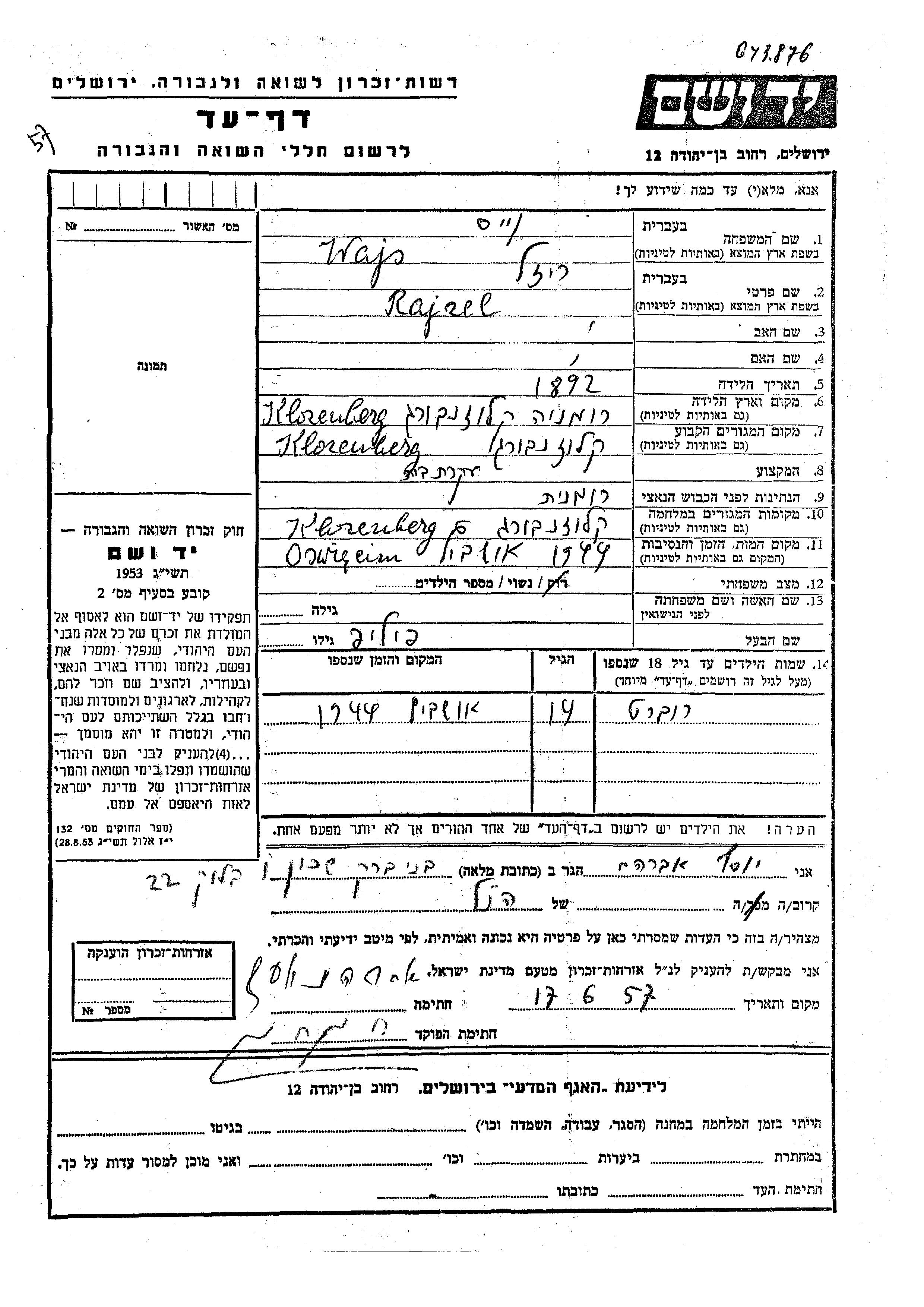 Яд Вашем - Листы свидетельских показаний Мемориального фонда