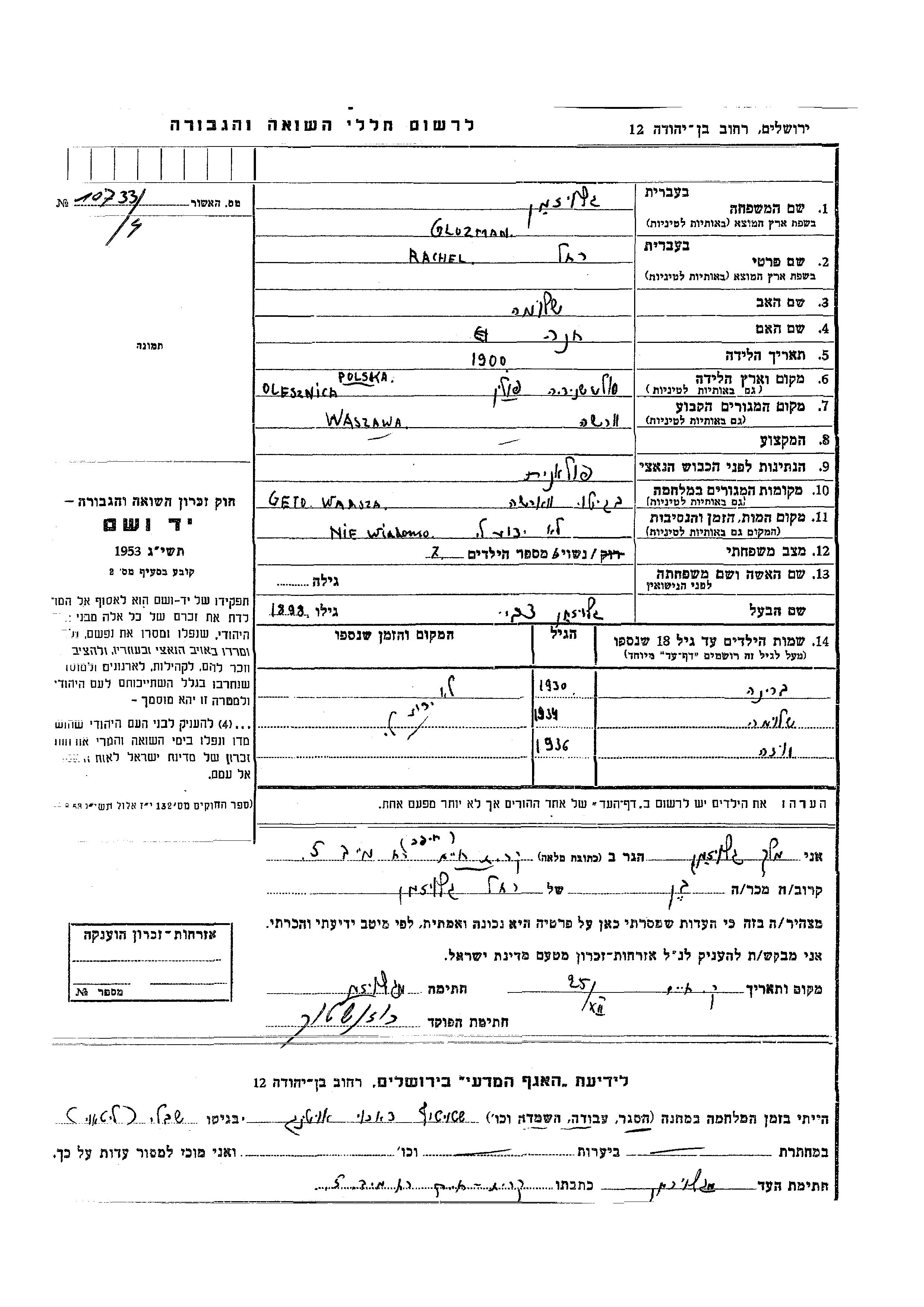 Глозман Иза 1936 Варшава, Польша Лист свидетельских показаний
