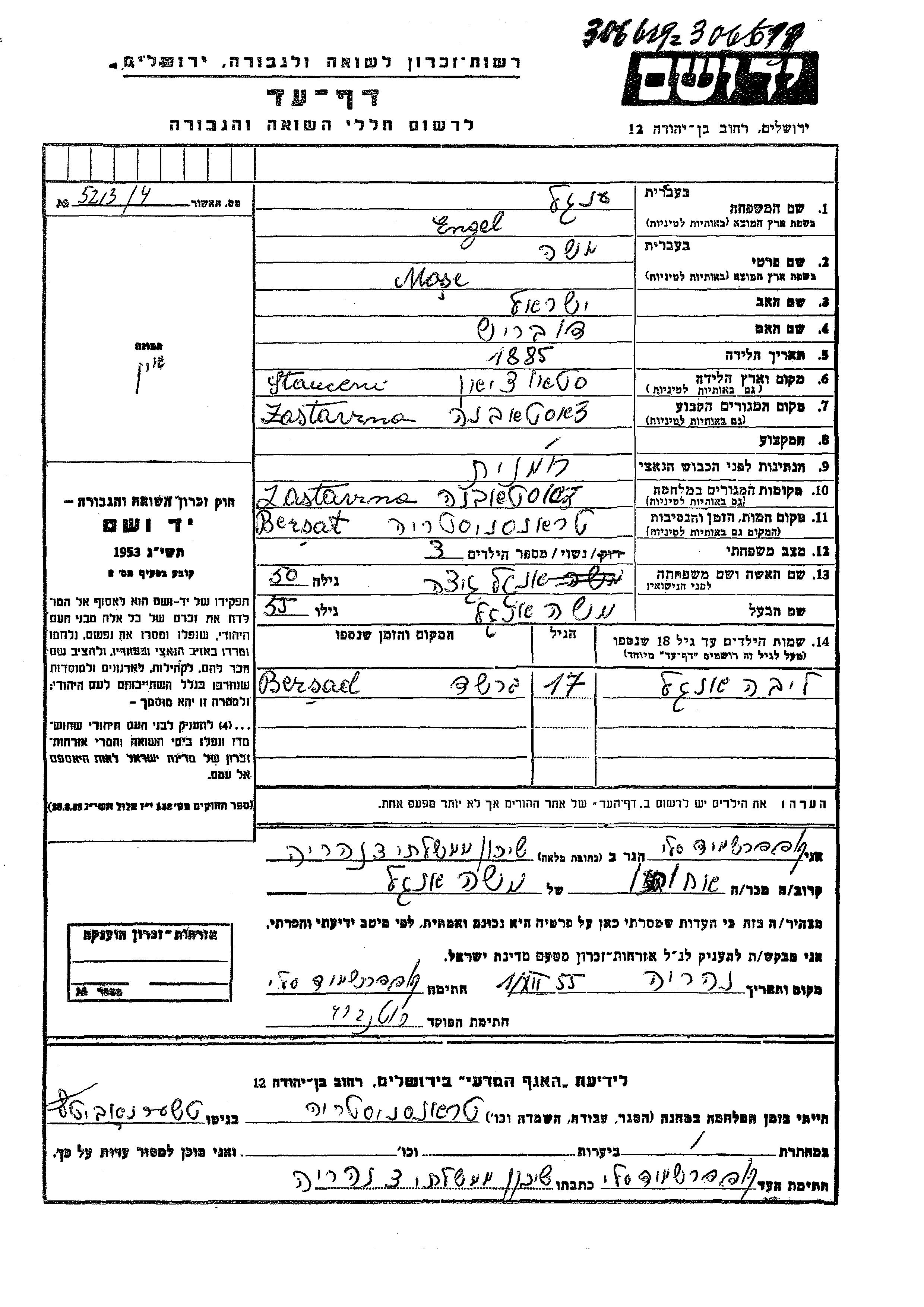 Энгель Либа Заставна, Румыния Лист свидетельских показаний