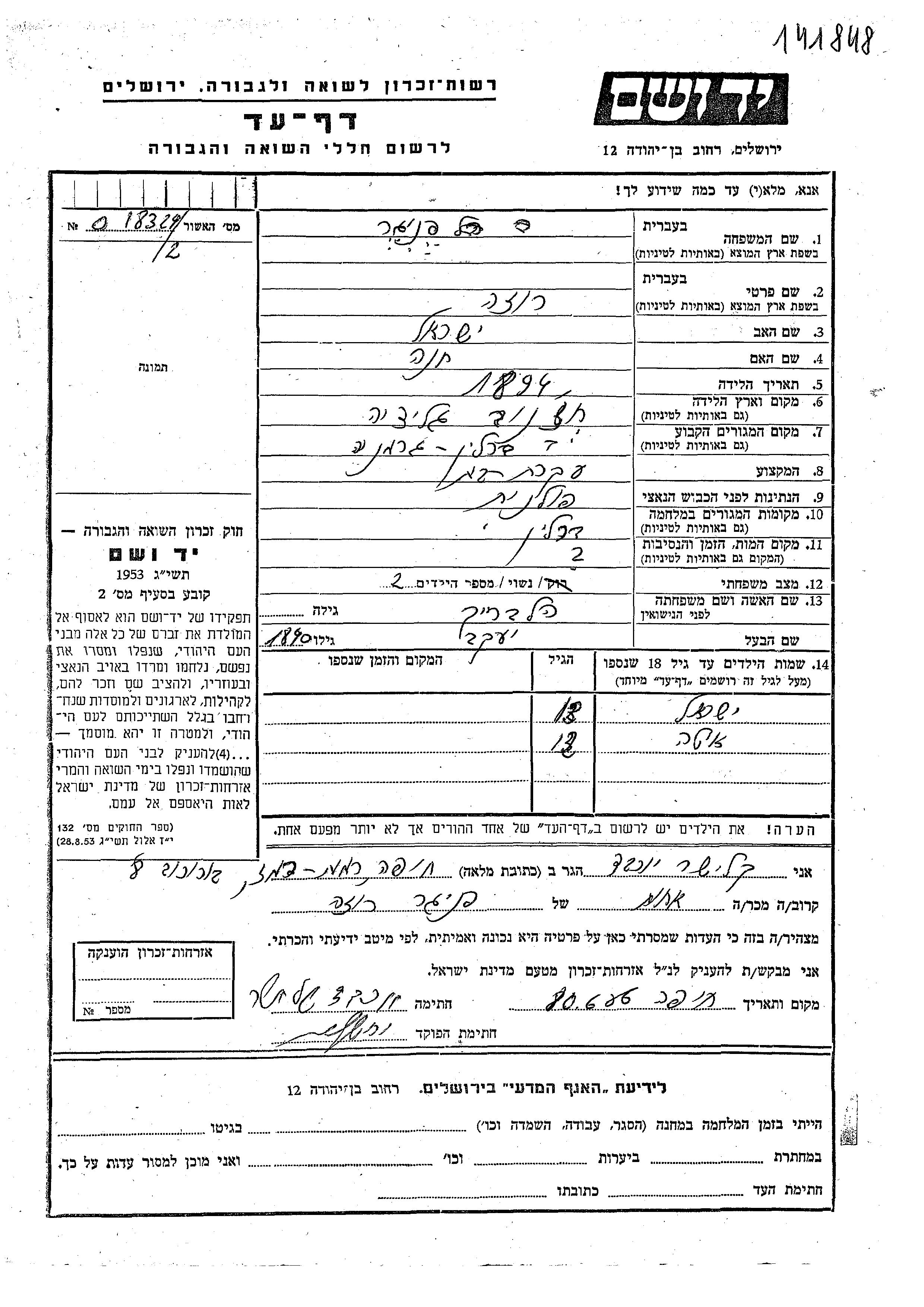 Яд Вашем - Листы свидетельских показаний Мемориального фонда