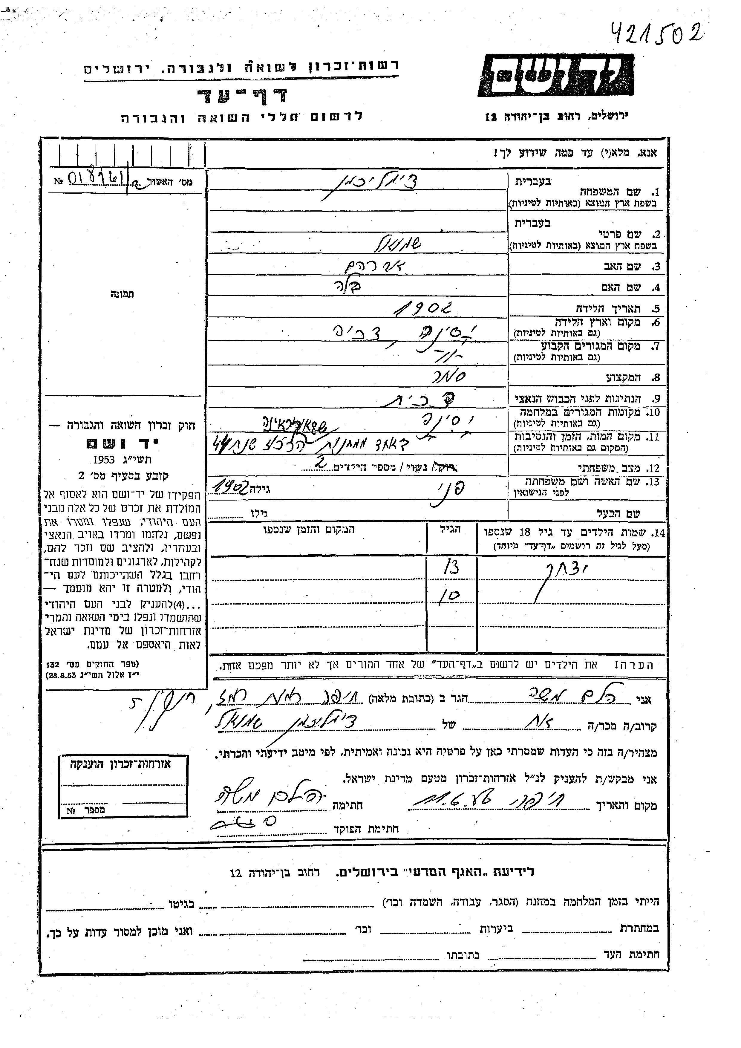 Яд Вашем - Листы свидетельских показаний Мемориального фонда