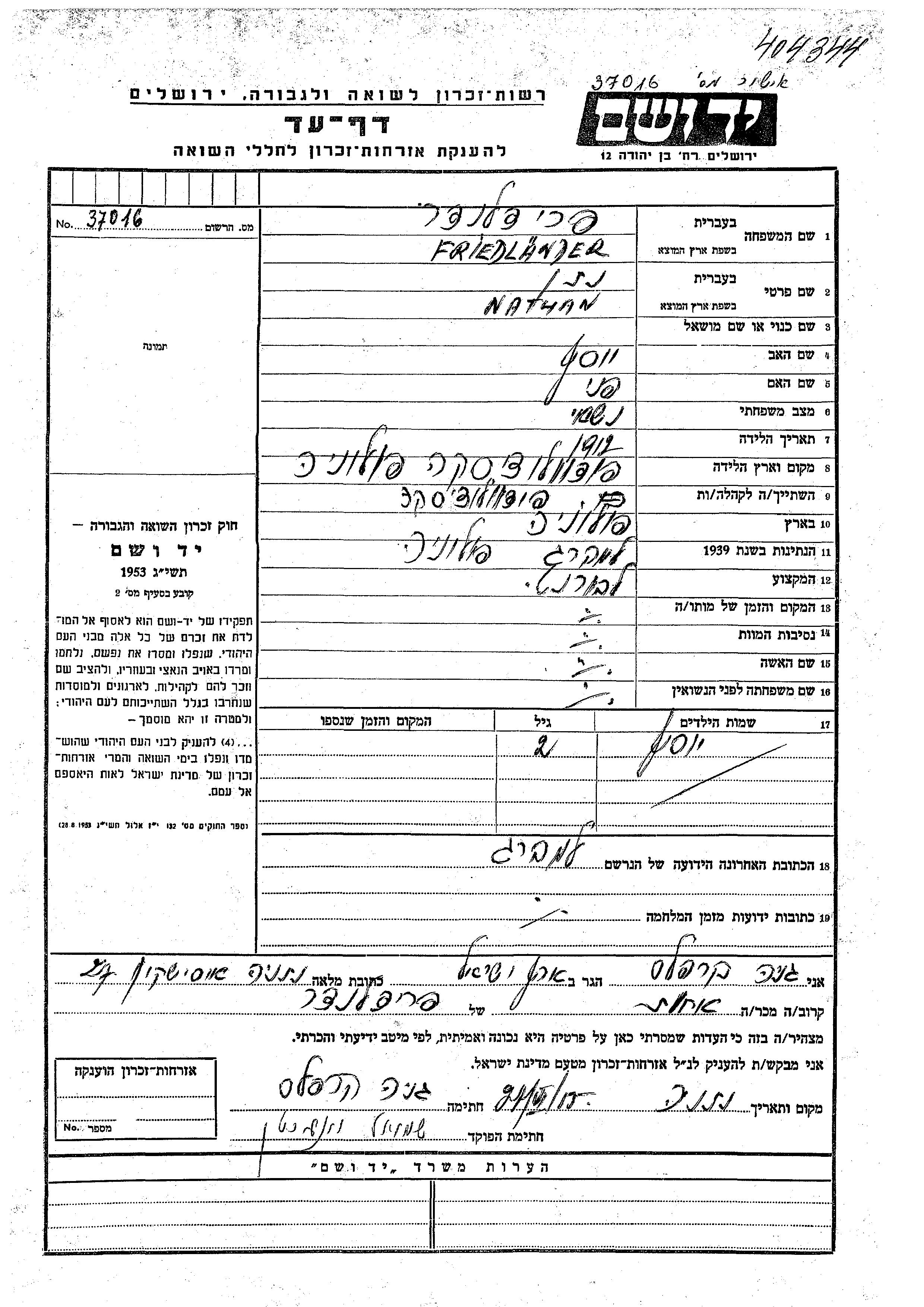 Фридландер Иосеф Подволочиск, Польша Лист свидетельских показаний