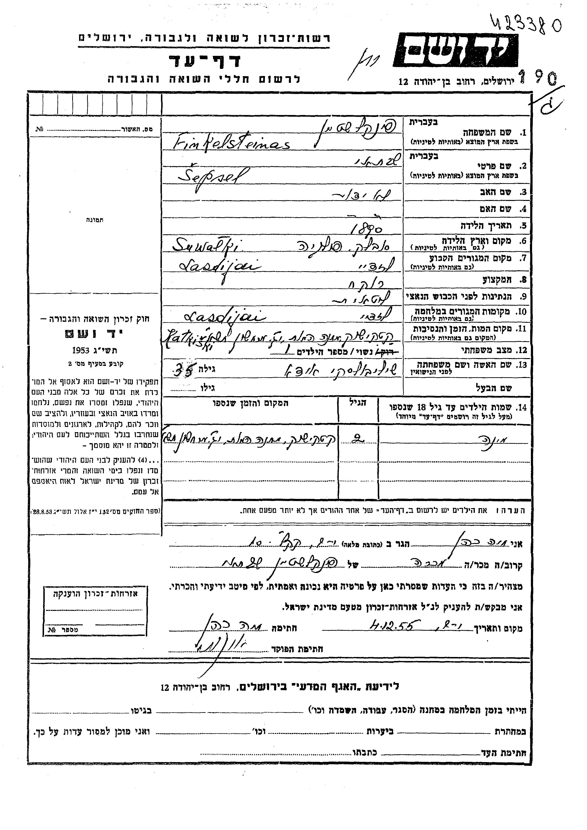 Яд Вашем - Листы свидетельских показаний Мемориального фонда