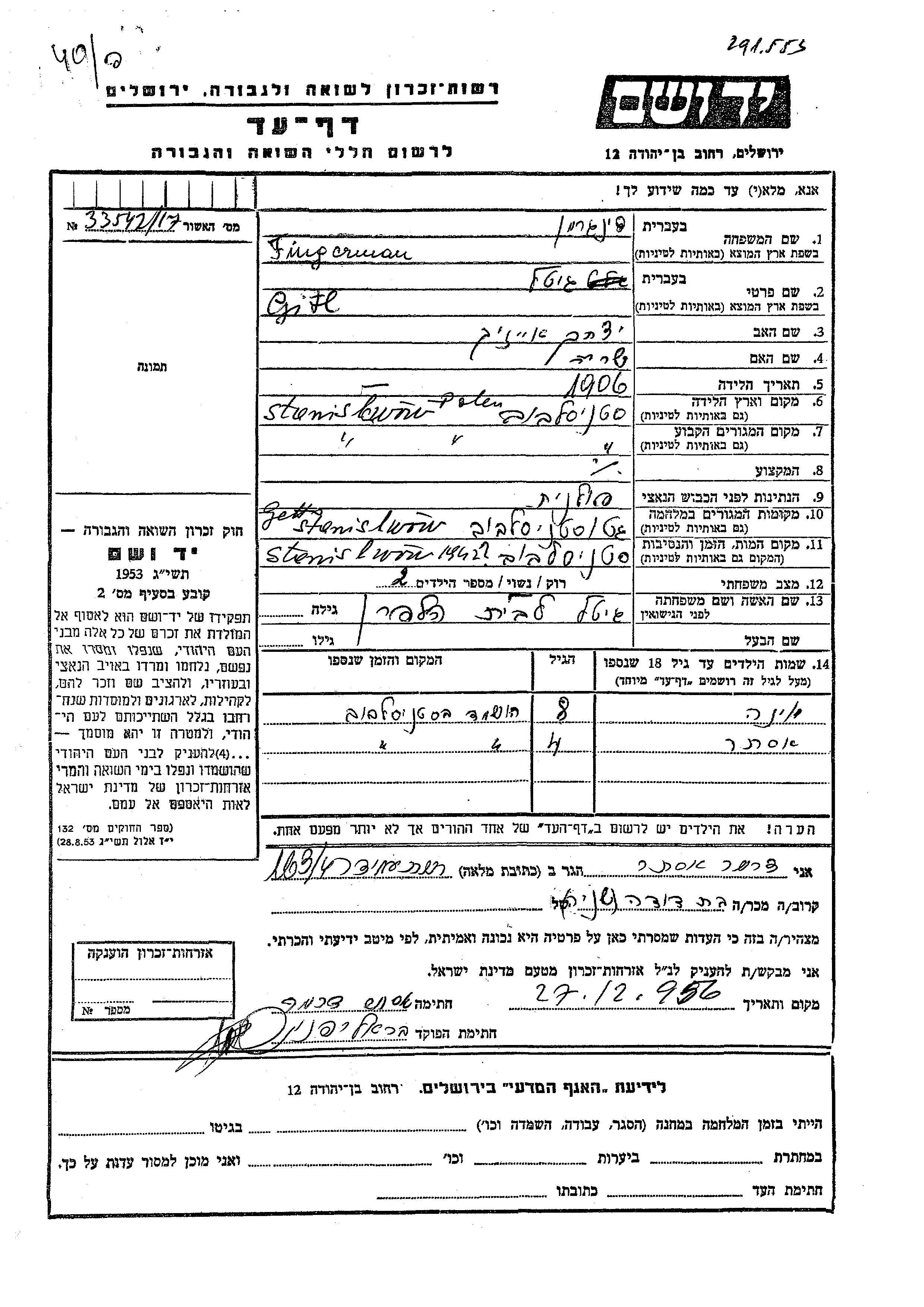 Яд Вашем - Листы свидетельских показаний Мемориального фонда