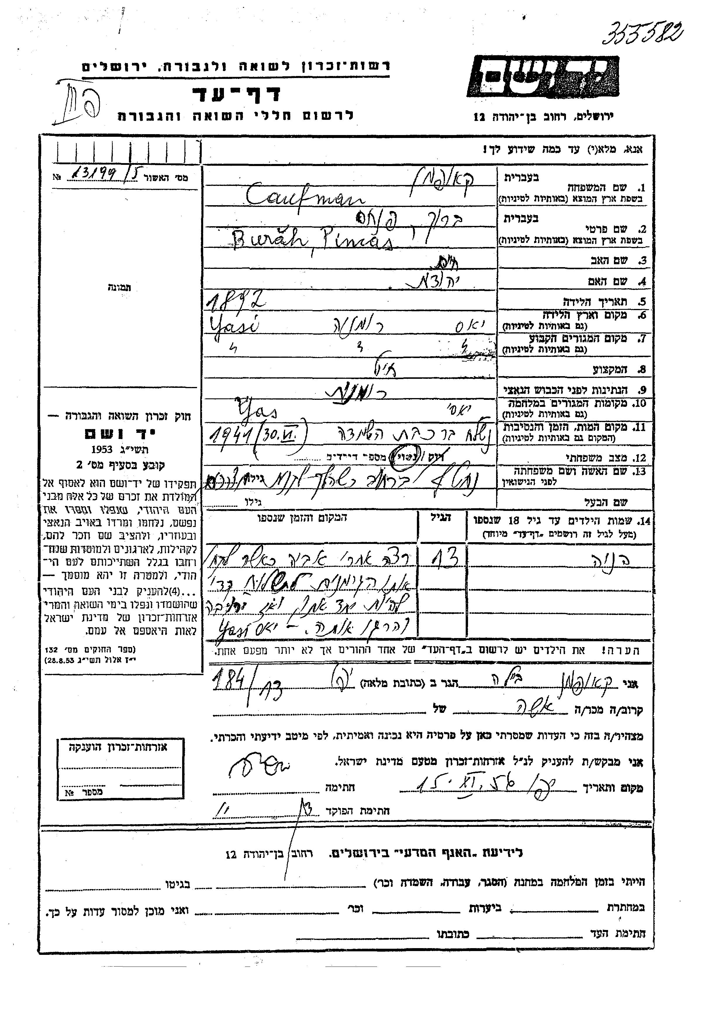 Кауфман Хеня Яссы, Румыния Лист свидетельских показаний