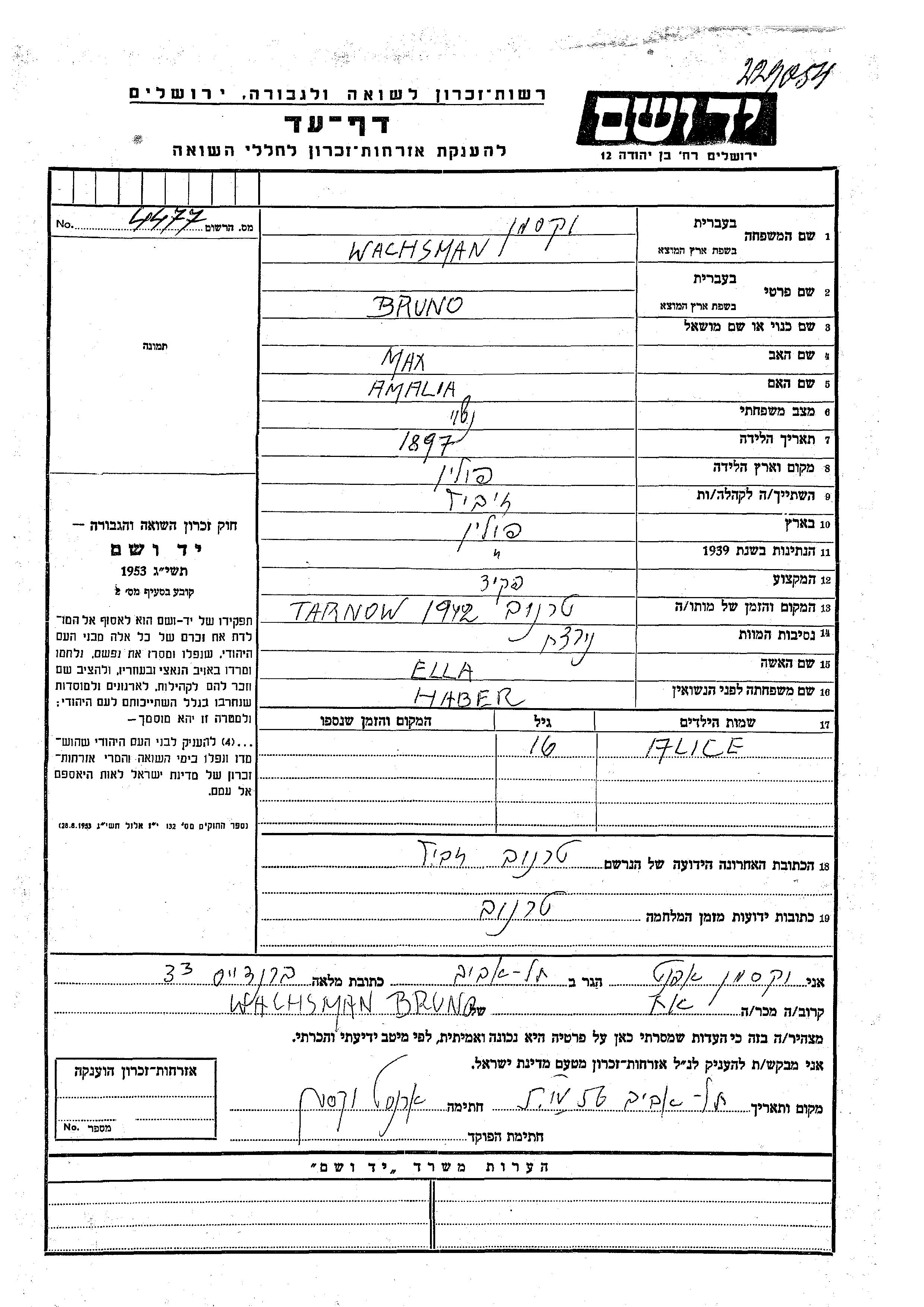 Яд Вашем - Листы свидетельских показаний Мемориального фонда