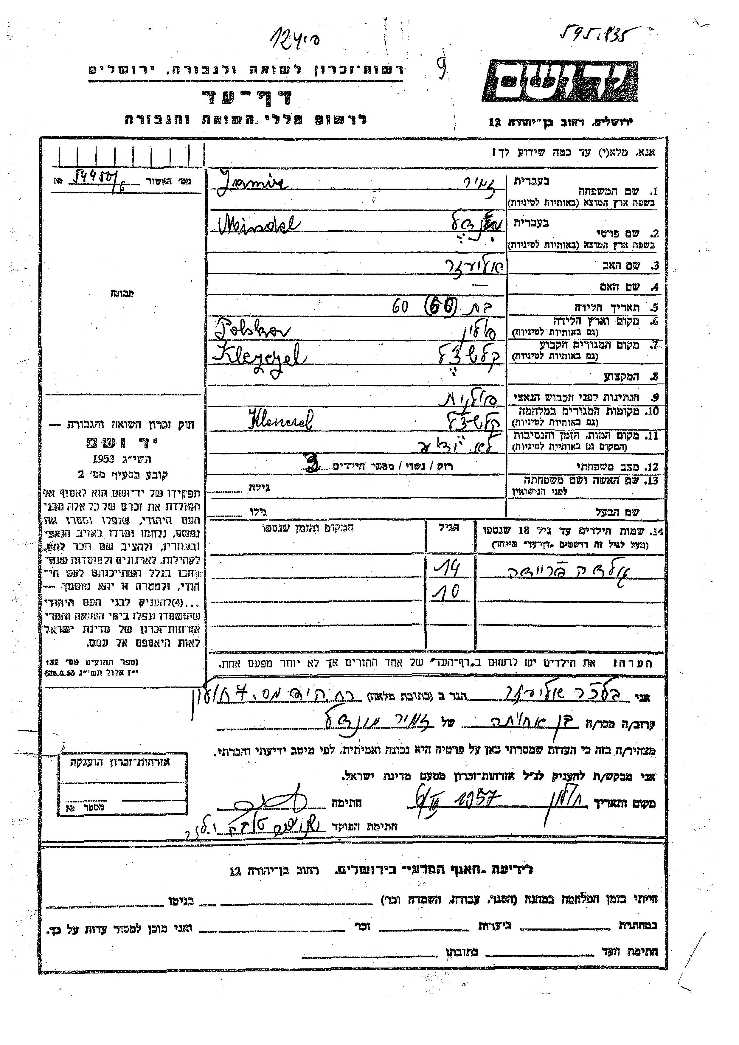 Имя неизвестно Замир родился/родилась Миндель Мендель. Ребенок. Место жительства до войны: Клещеле, Польша. Место во время войны: Клещеле, Польша.