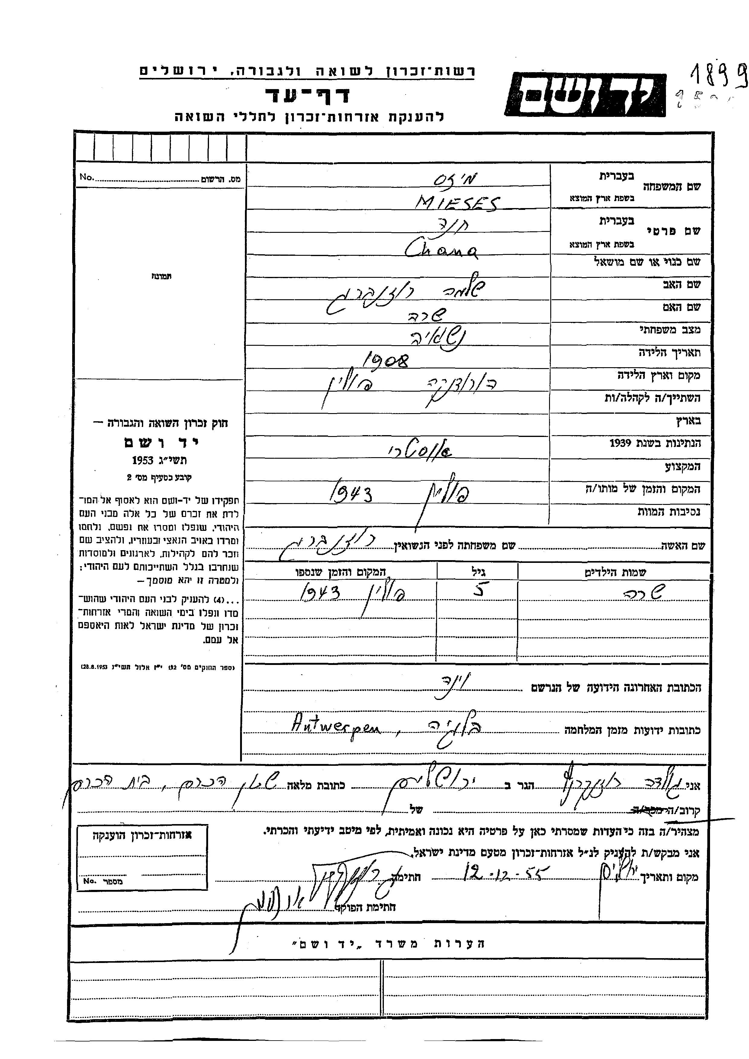 Яд Вашем - Листы свидетельских показаний Мемориального фонда