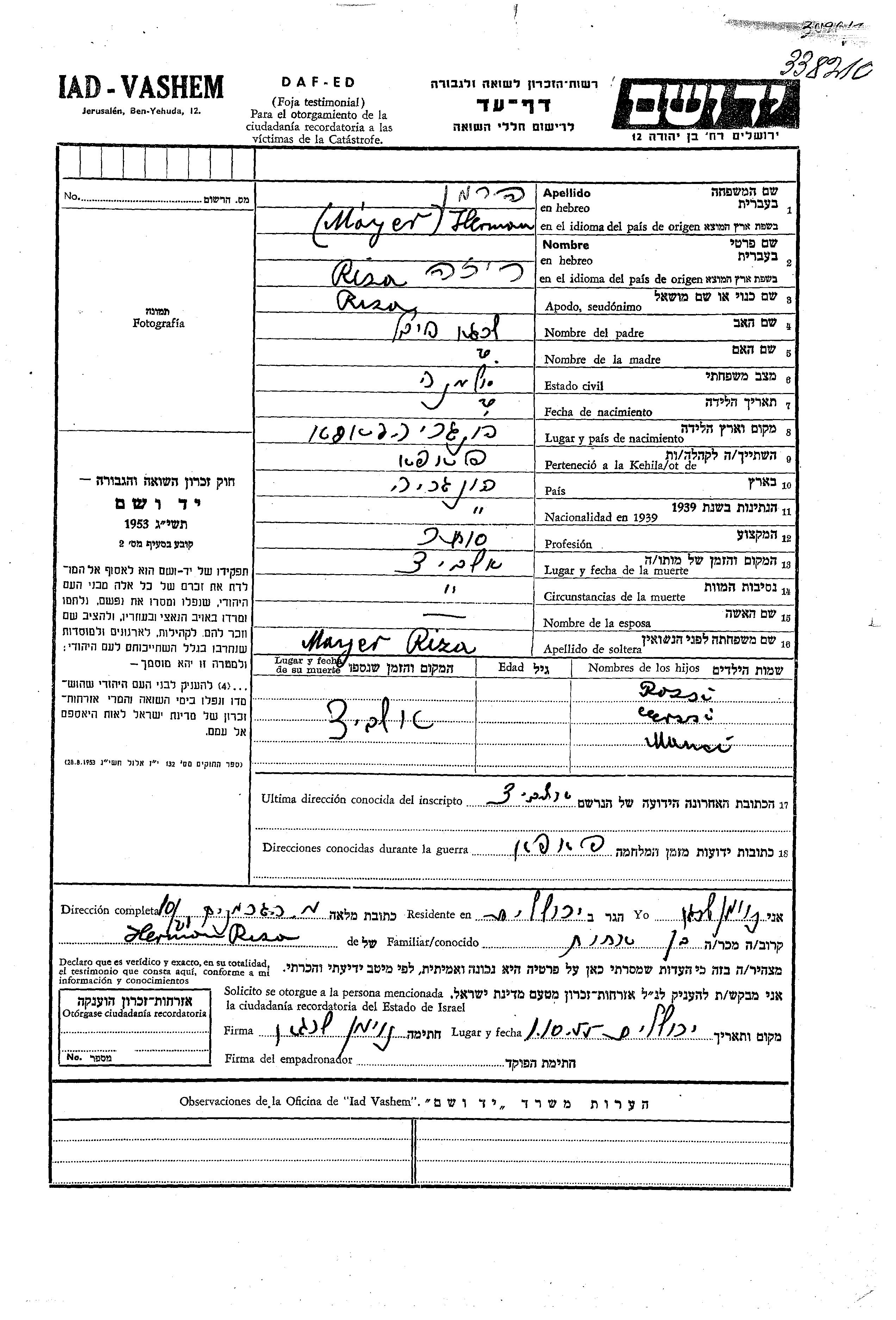Рожи Херман Риса Риза девичья фамилия Майер. Ребенок. Место жительства до войны: Папа, Венгрия. Место во время войны: Аушвиц, Польша.