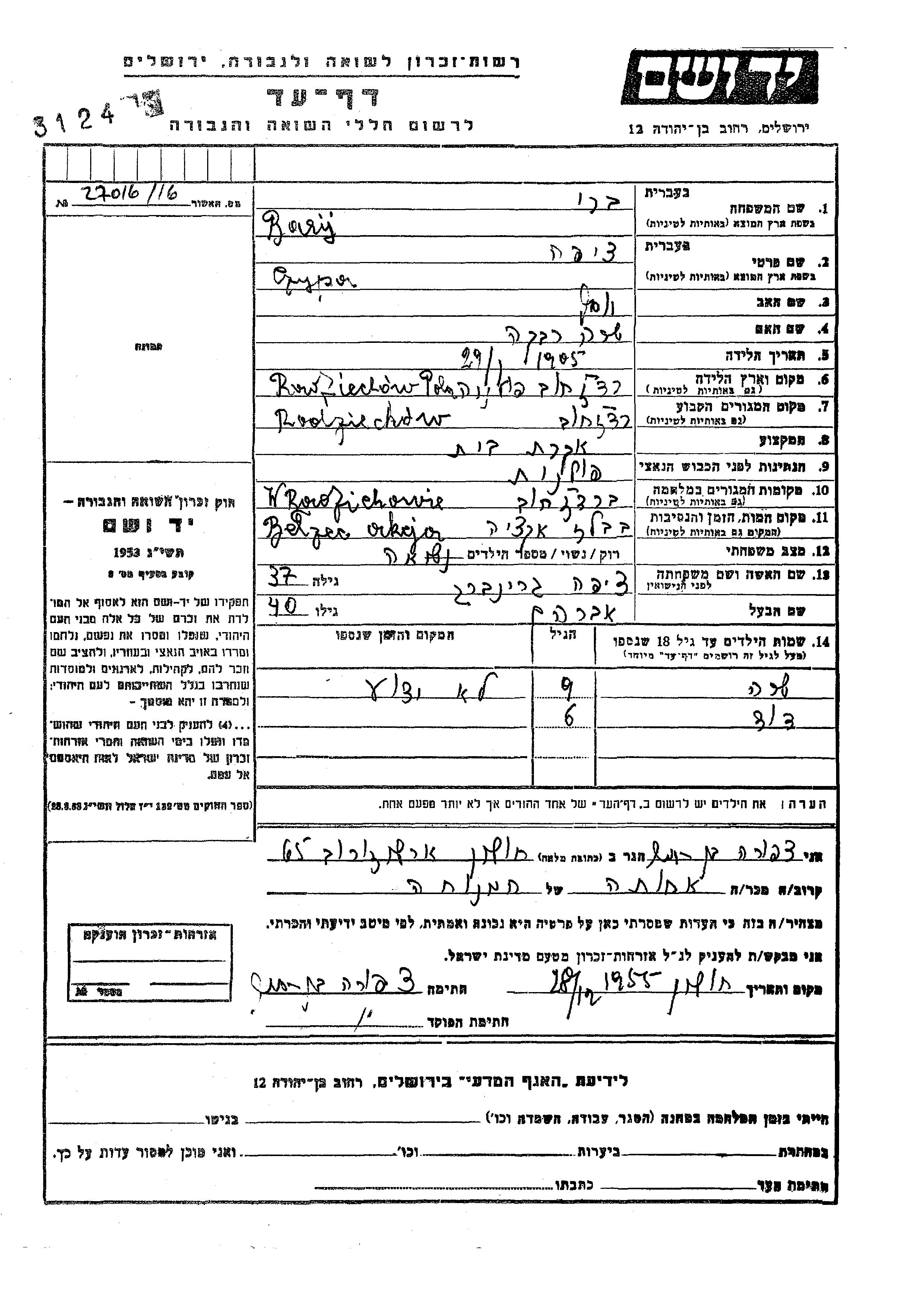 Яд Вашем - Листы свидетельских показаний Мемориального фонда
