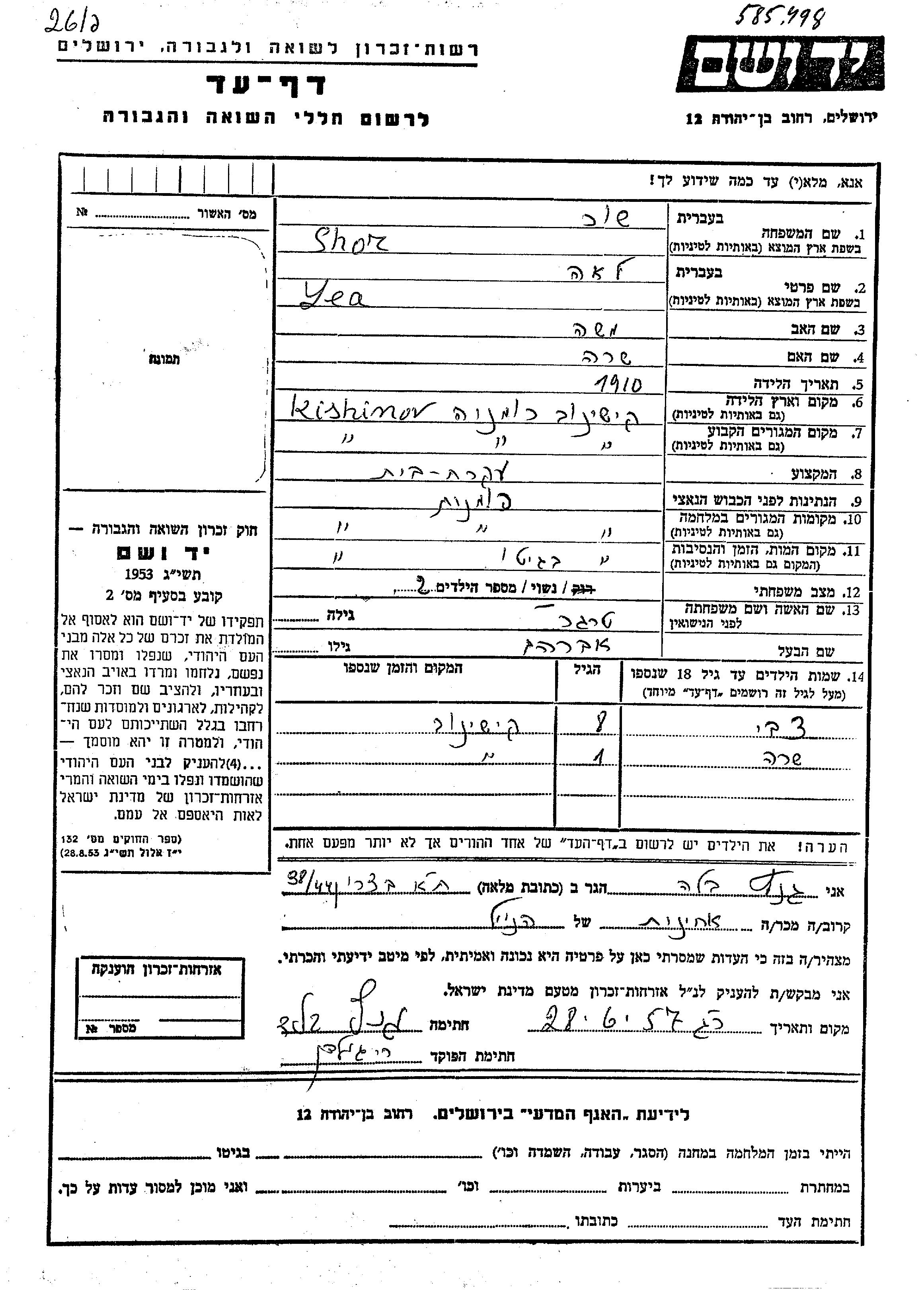 Яд Вашем - Листы свидетельских показаний Мемориального фонда