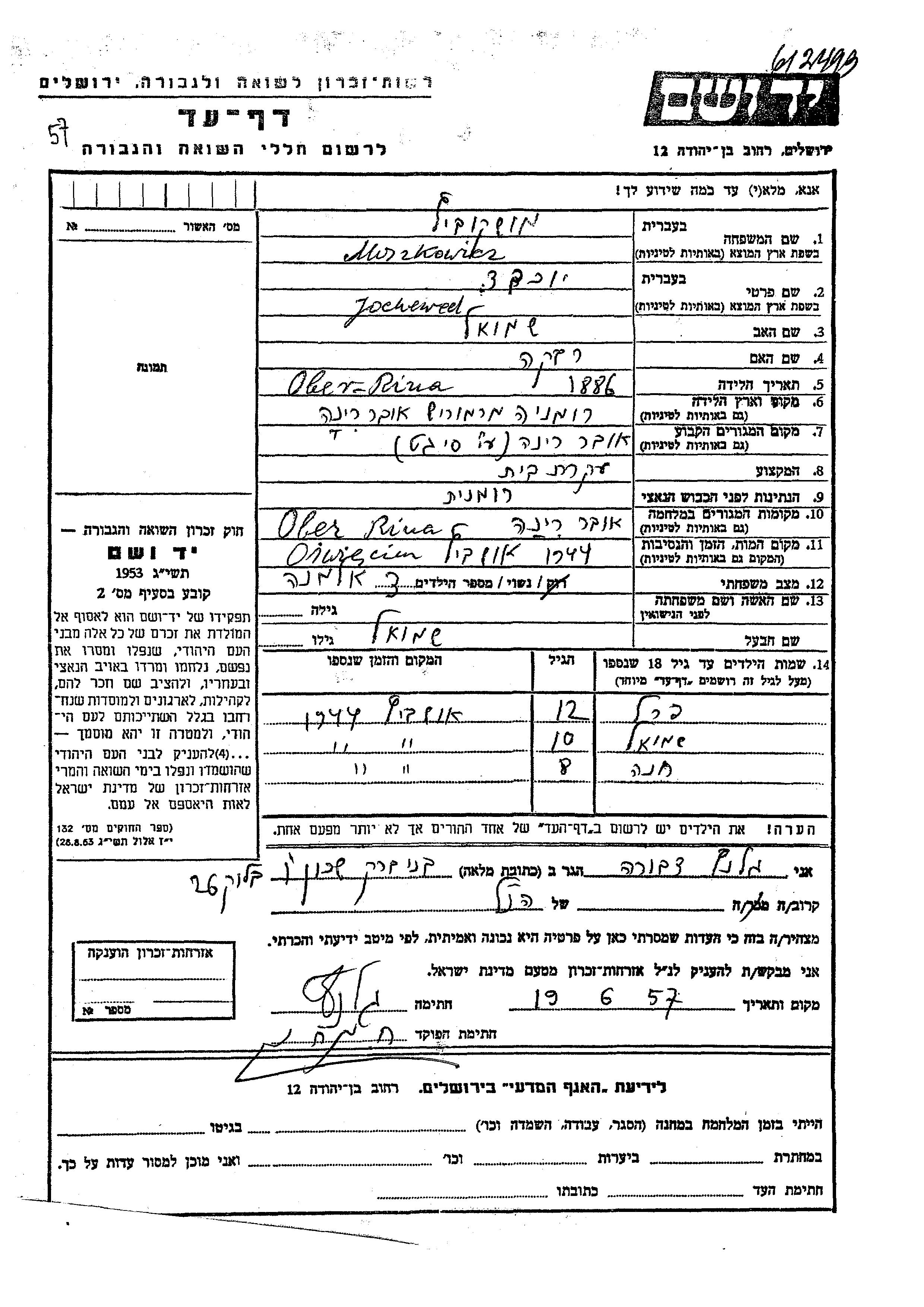 Мошкович Шмуэль Обер Рина, Румыния Лист свидетельских показаний