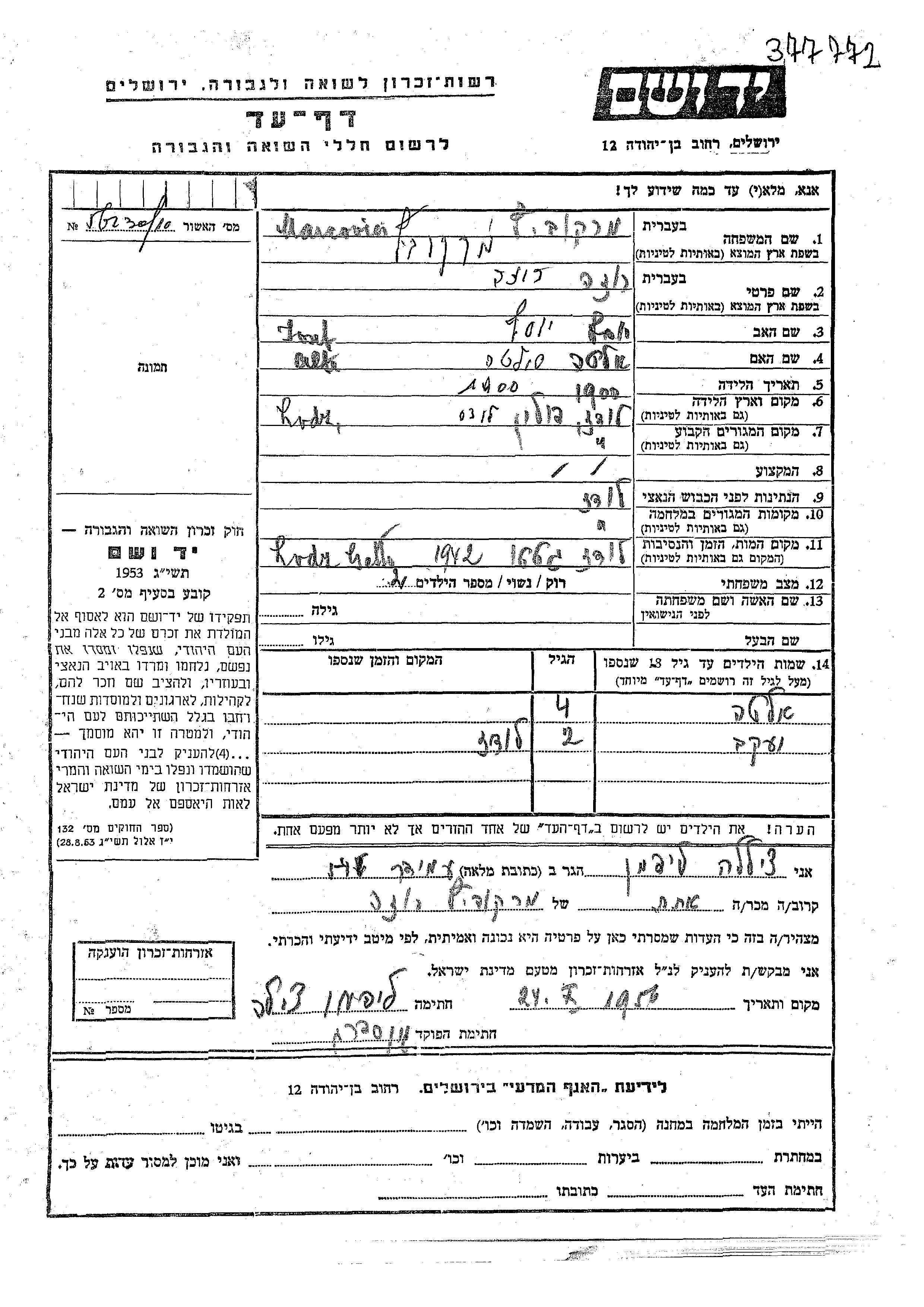 Яд Вашем - Листы свидетельских показаний Мемориального фонда