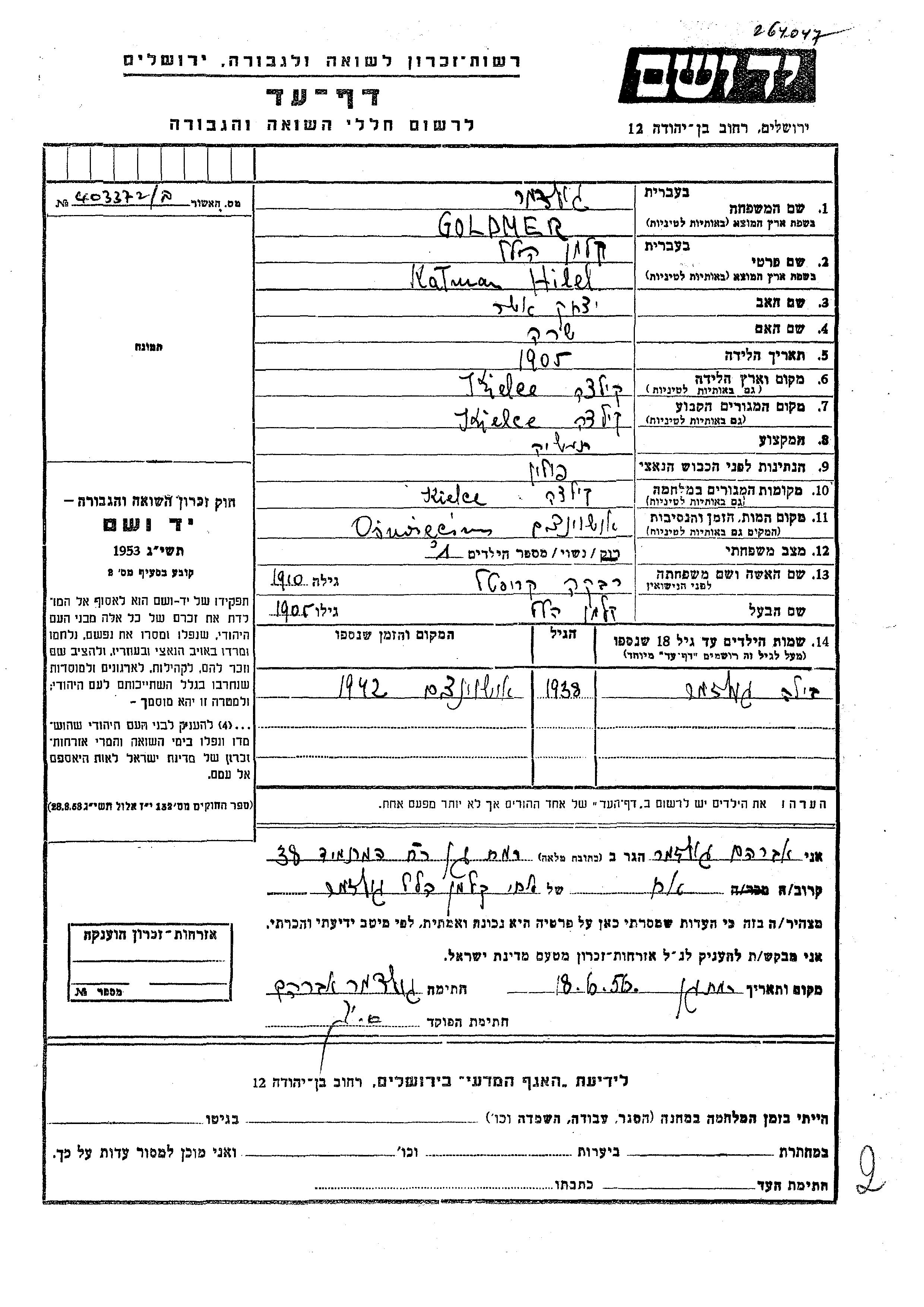Гольдмер Била Кельце, Польша Лист свидетельских показаний
