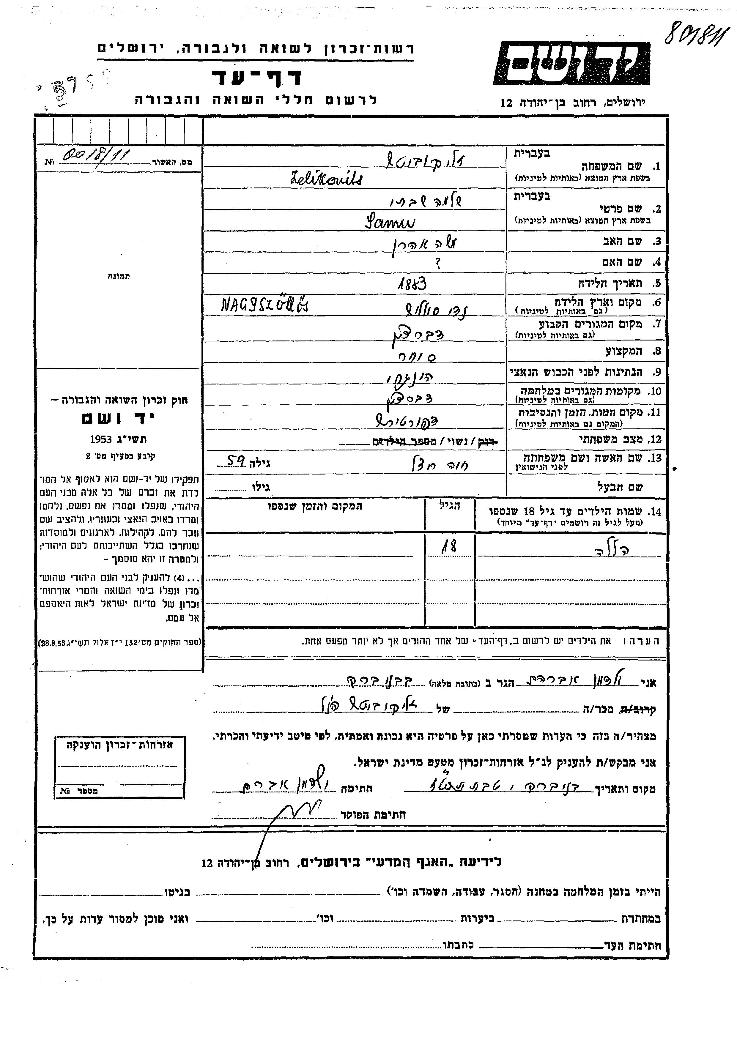 Яд Вашем - Листы свидетельских показаний Мемориального фонда