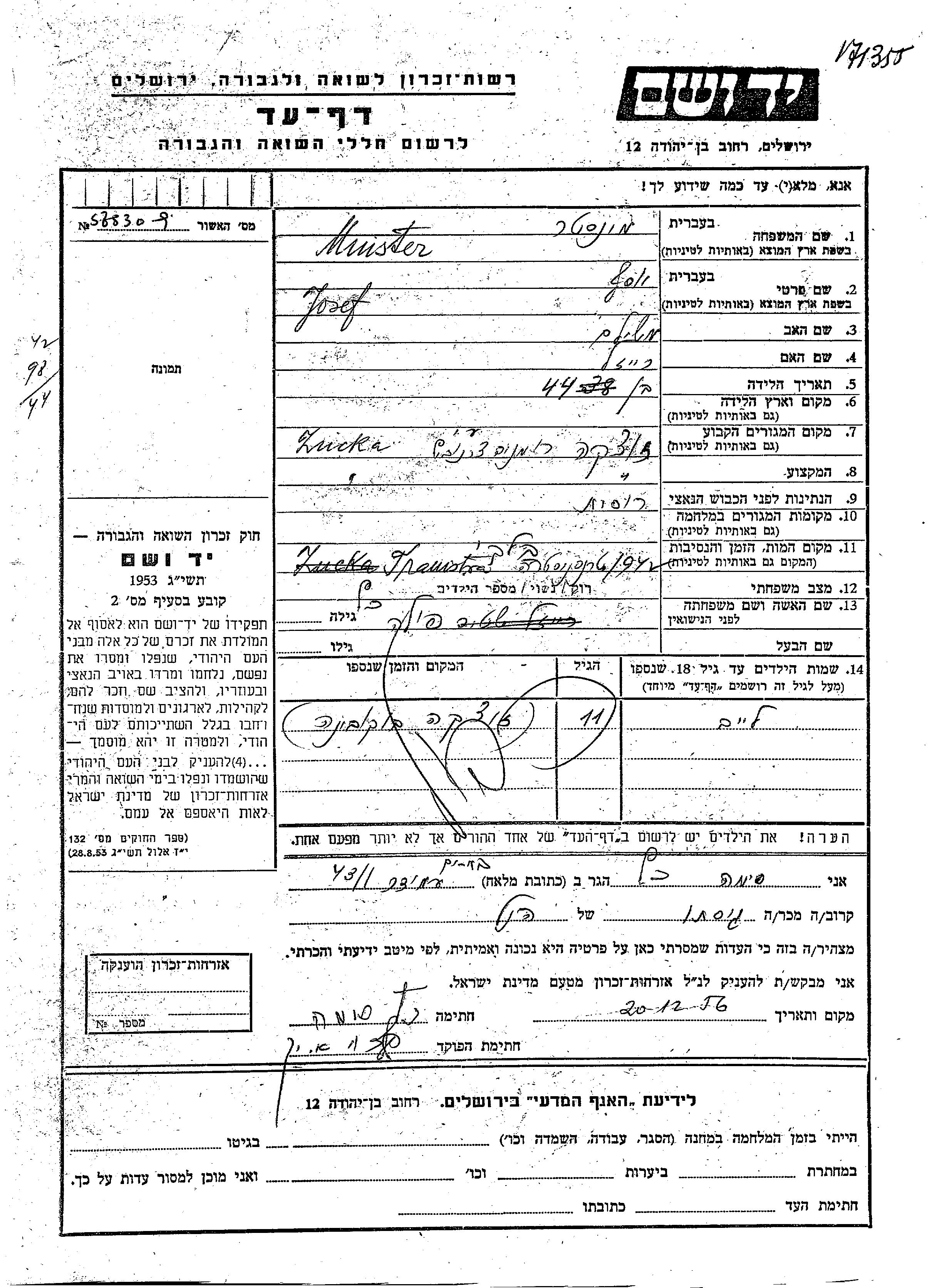 Лейб Минстер Иосеф Пола девичья фамилия Кац. Ребенок. Место жительства до войны: Жучика, Румыния.