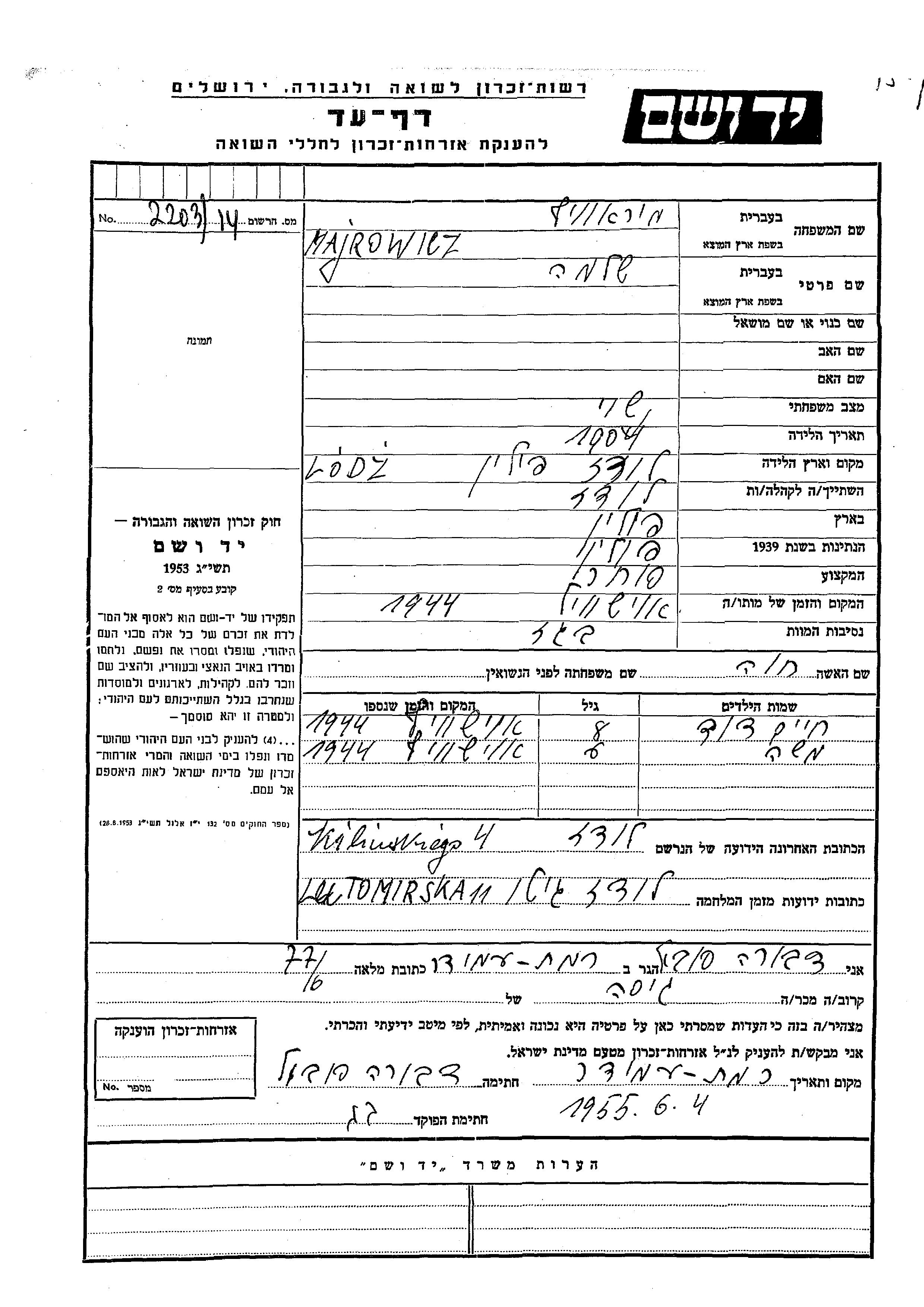 Яд Вашем - Листы свидетельских показаний Мемориального фонда