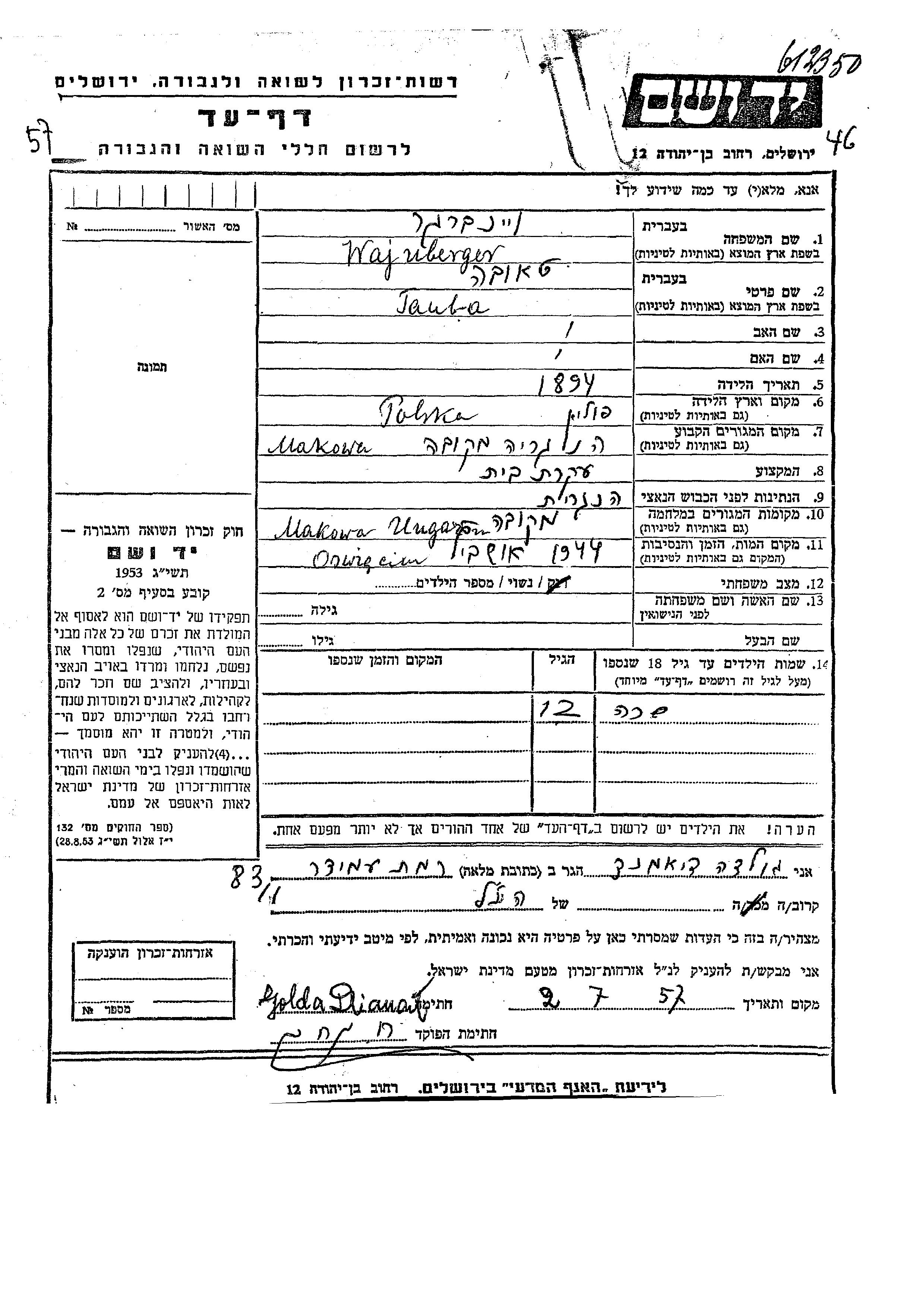 Вайнбергер Сара Макова, Польша Лист свидетельских показаний