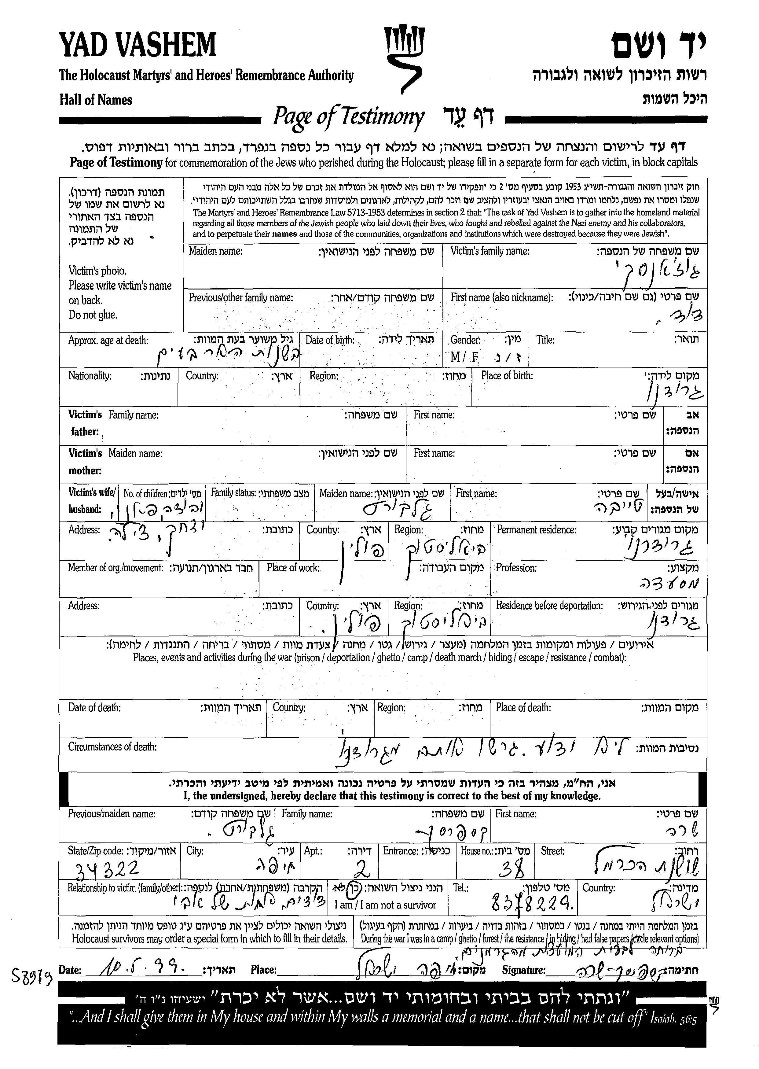 Яд Вашем - Листы свидетельских показаний Мемориального фонда