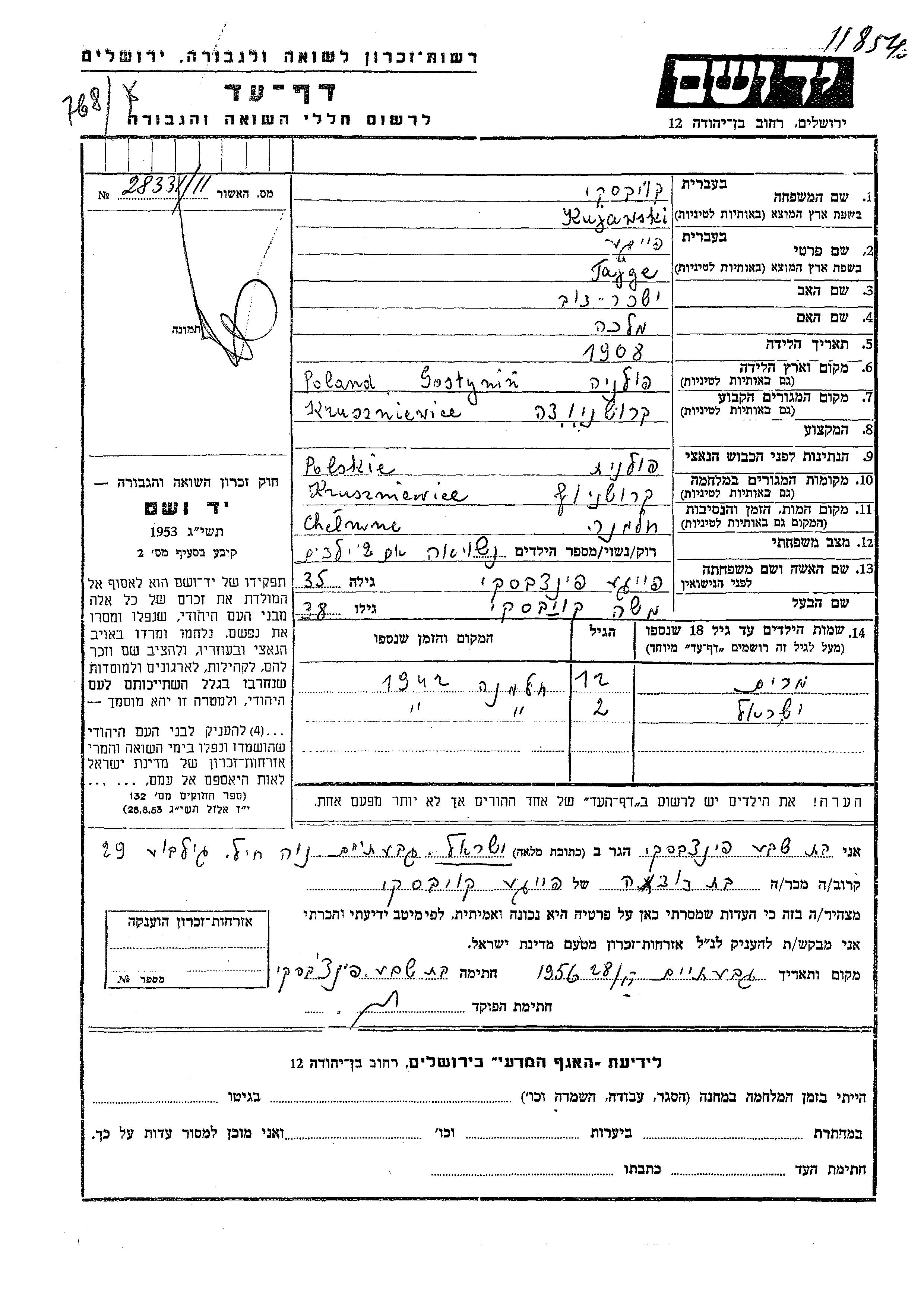Куявски Мирьям Kruszniewice, Лист свидетельских показаний