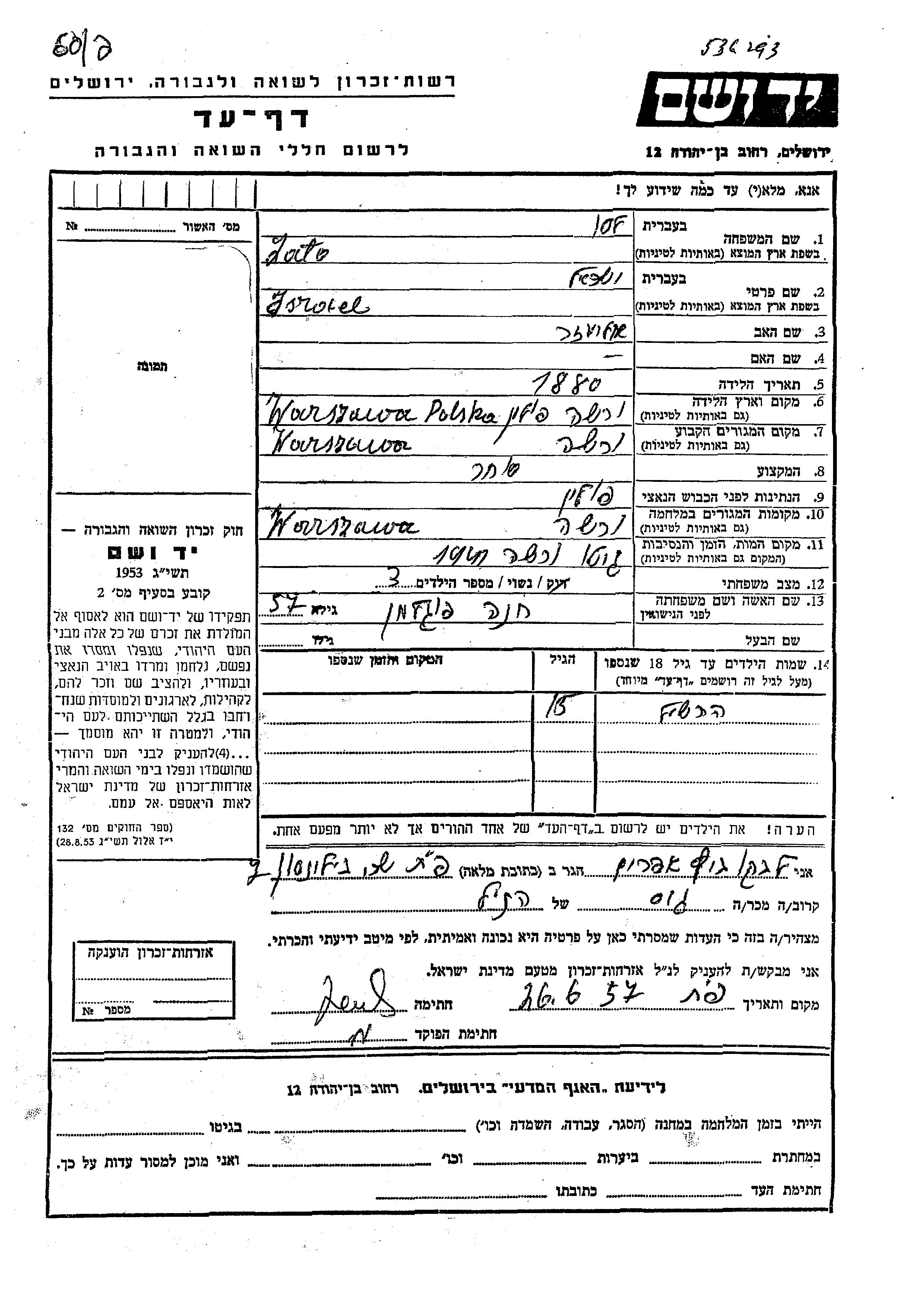 Яд Вашем - Листы свидетельских показаний Мемориального фонда