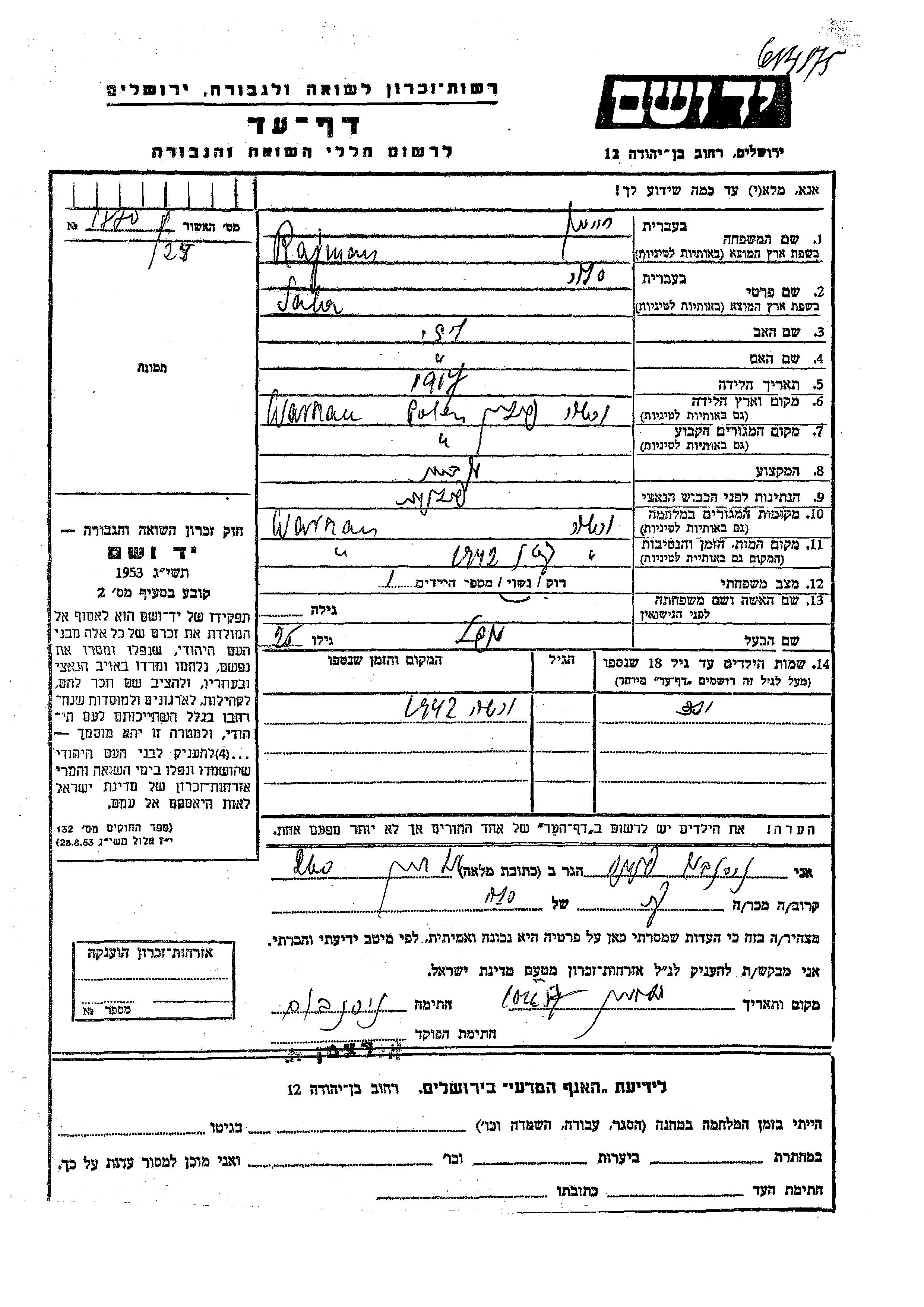 Райман Бен Варшава, Польша Лист свидетельских показаний