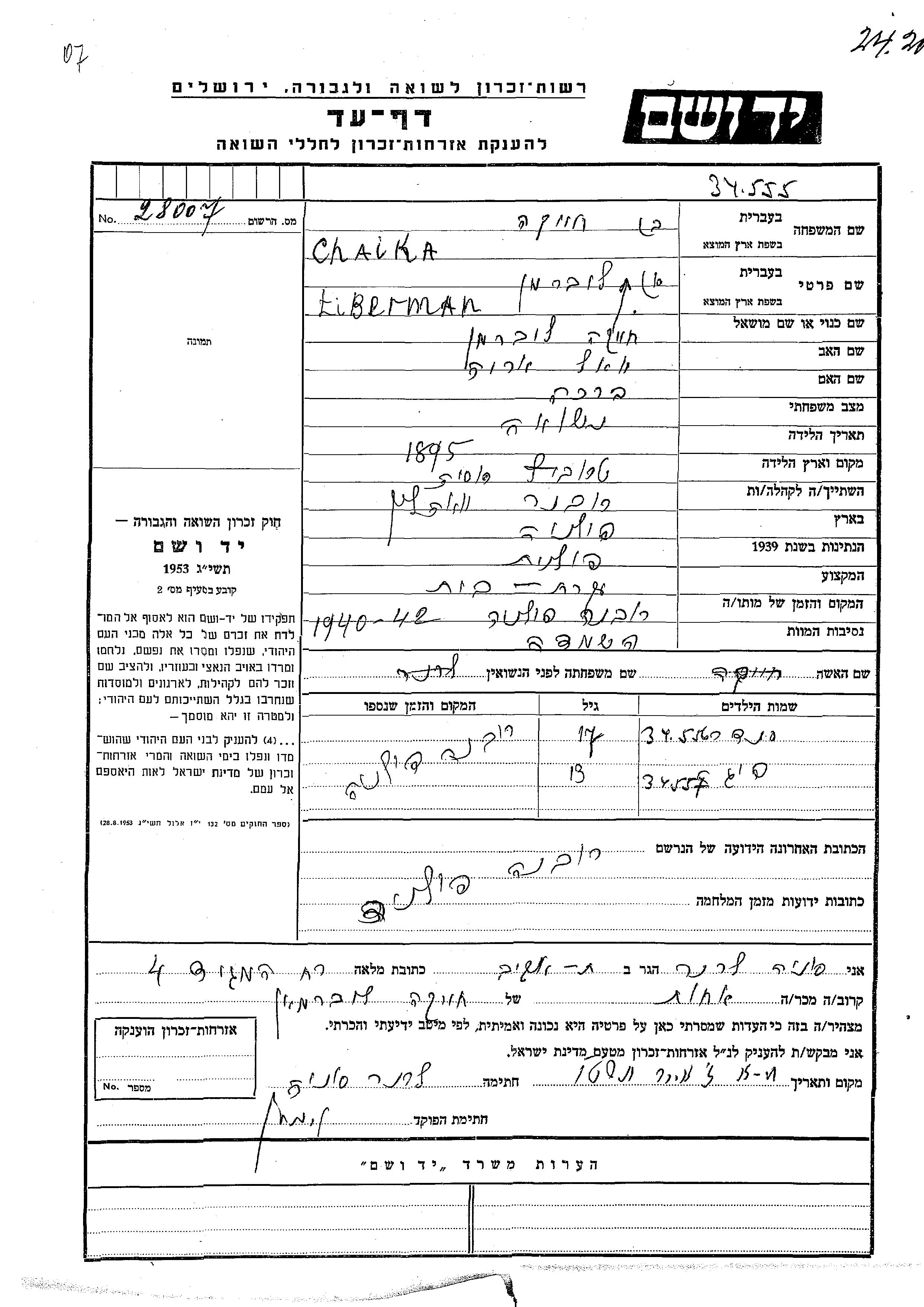 Либерман Фейга Ровно, Польша Лист свидетельских показаний