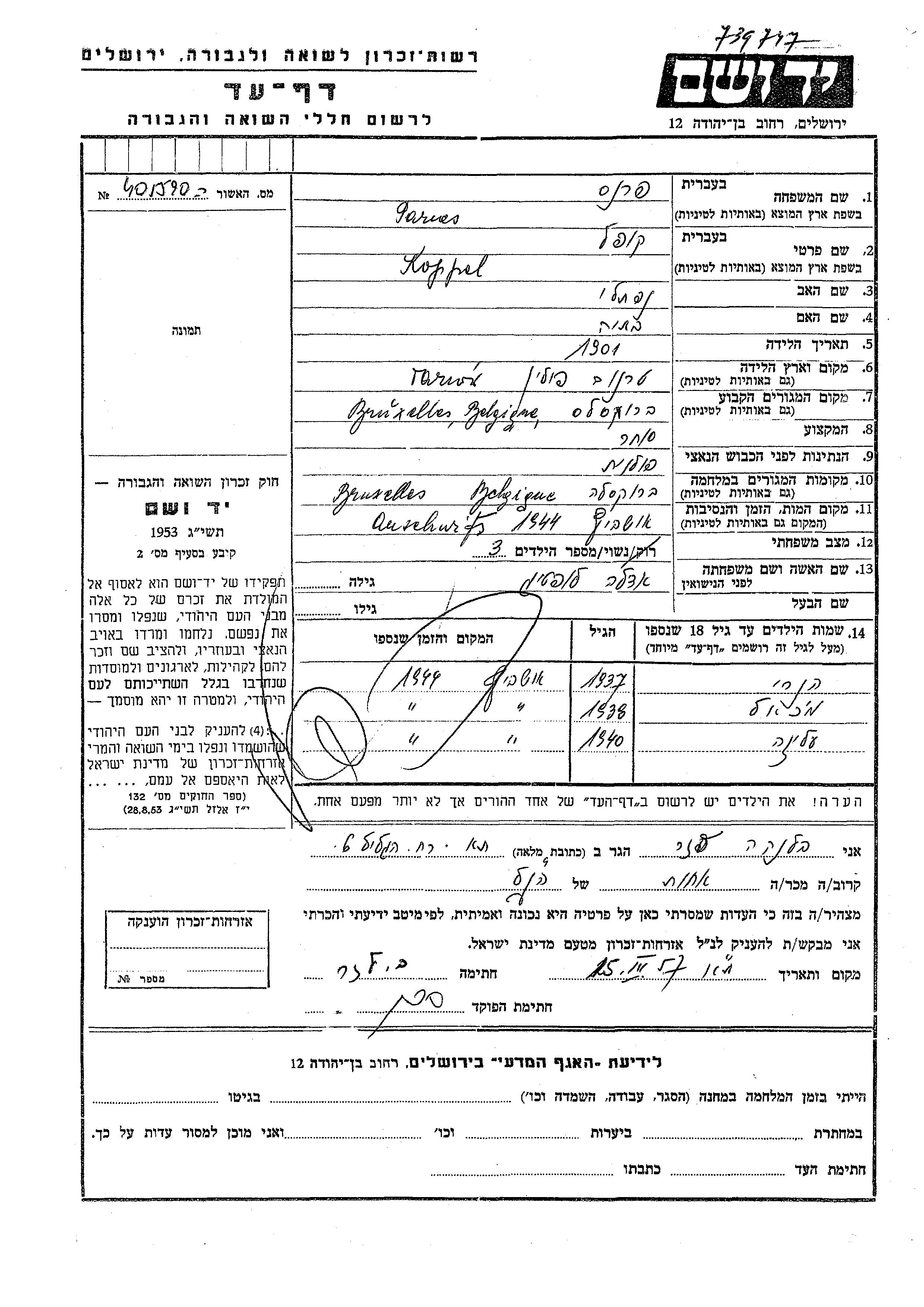 Яд Вашем - Листы свидетельских показаний Мемориального фонда