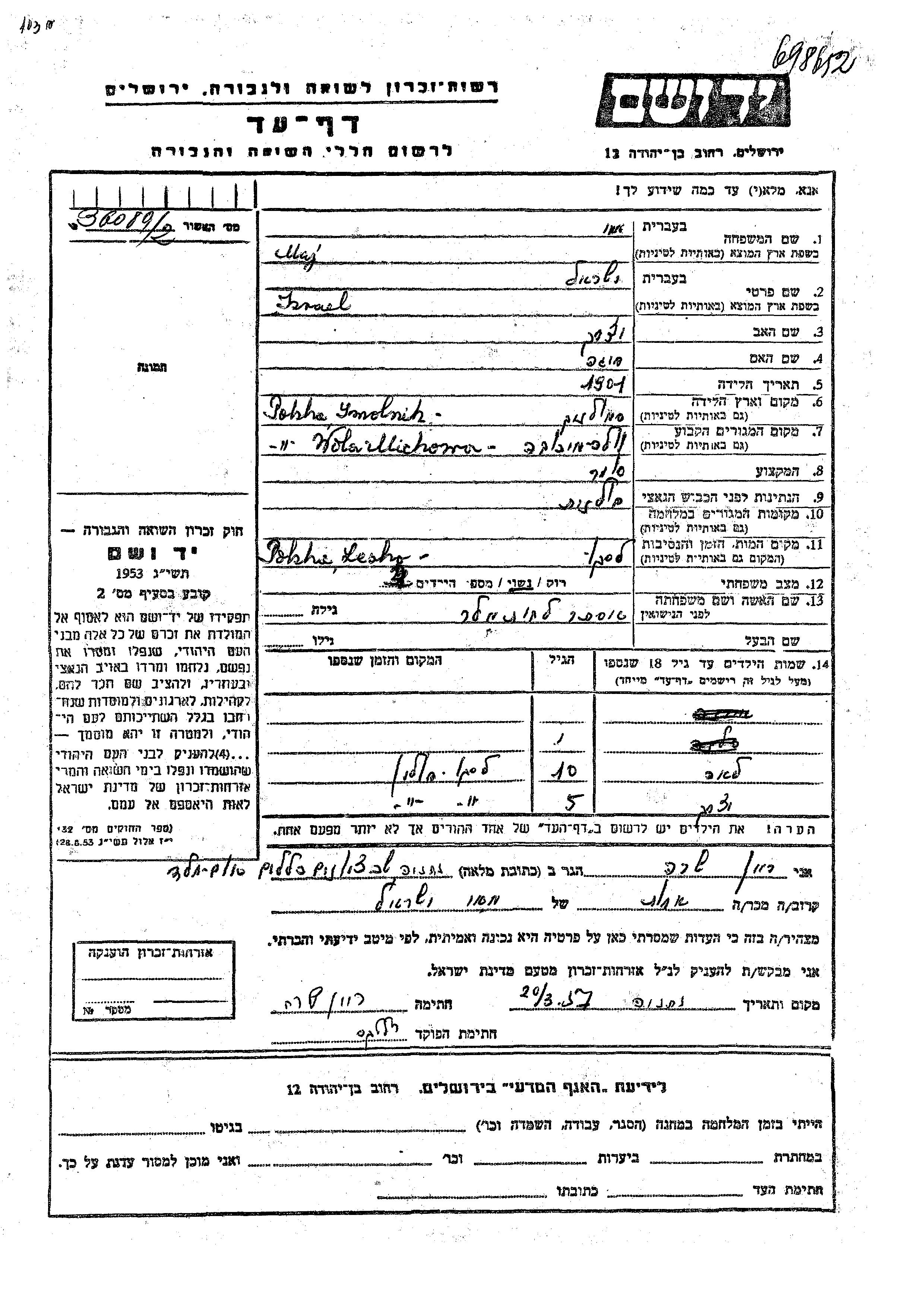 Яд Вашем - Листы свидетельских показаний Мемориального фонда