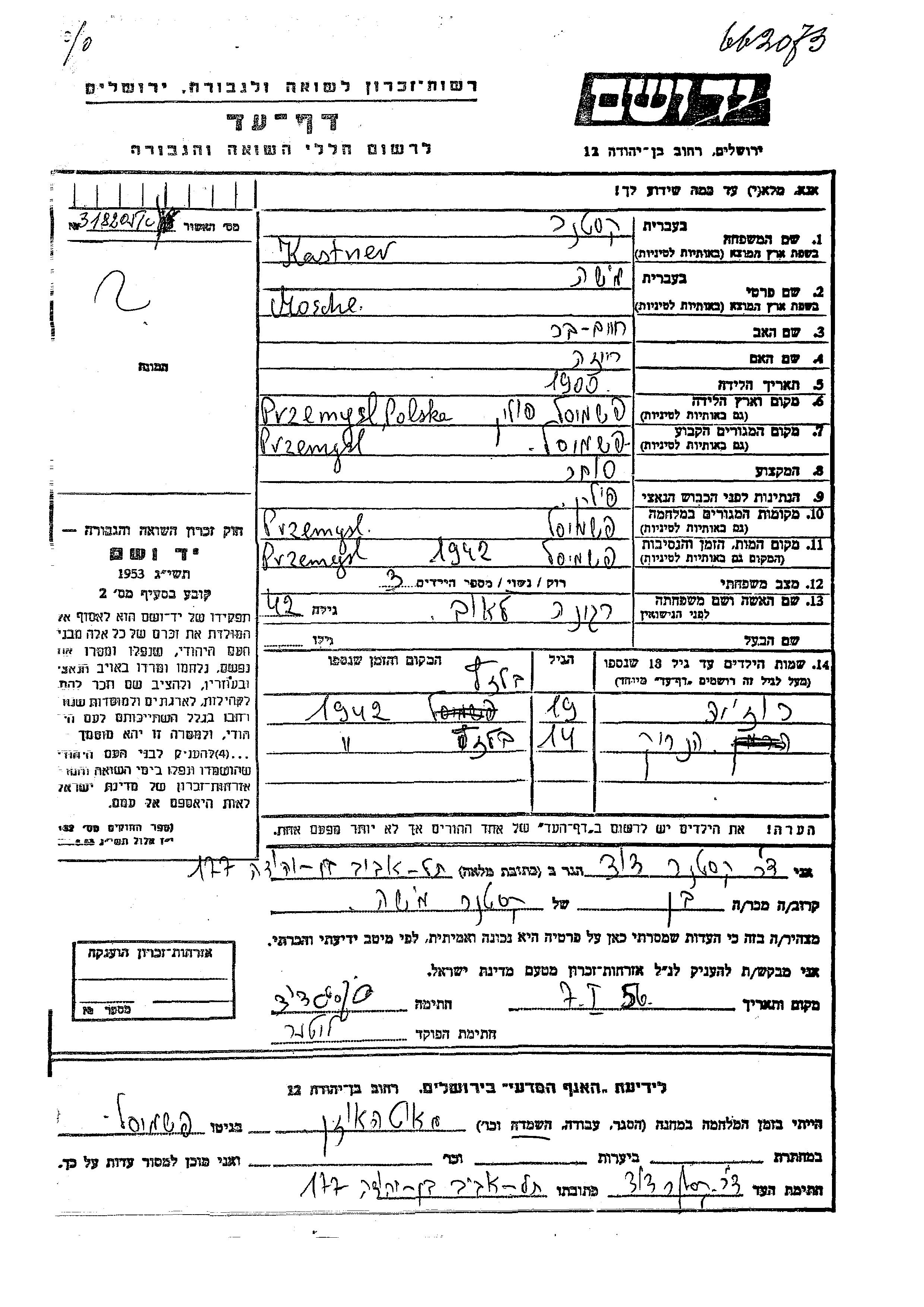 Кастнер Хенрих Пшемысль, Польша Лист свидетельских показаний