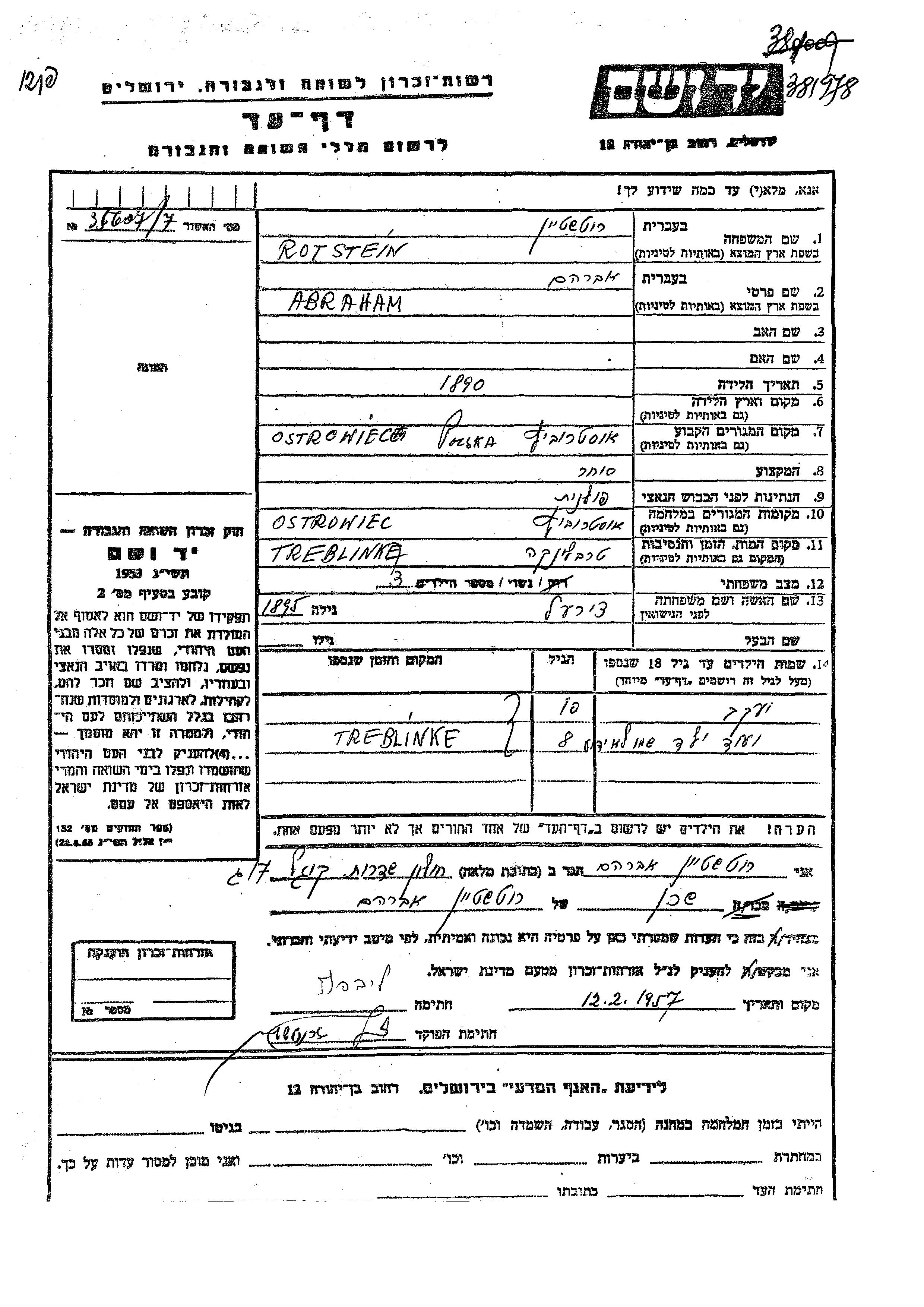Ротштайн Имя неизвестно Островец, Польша Лист свидетельских показаний