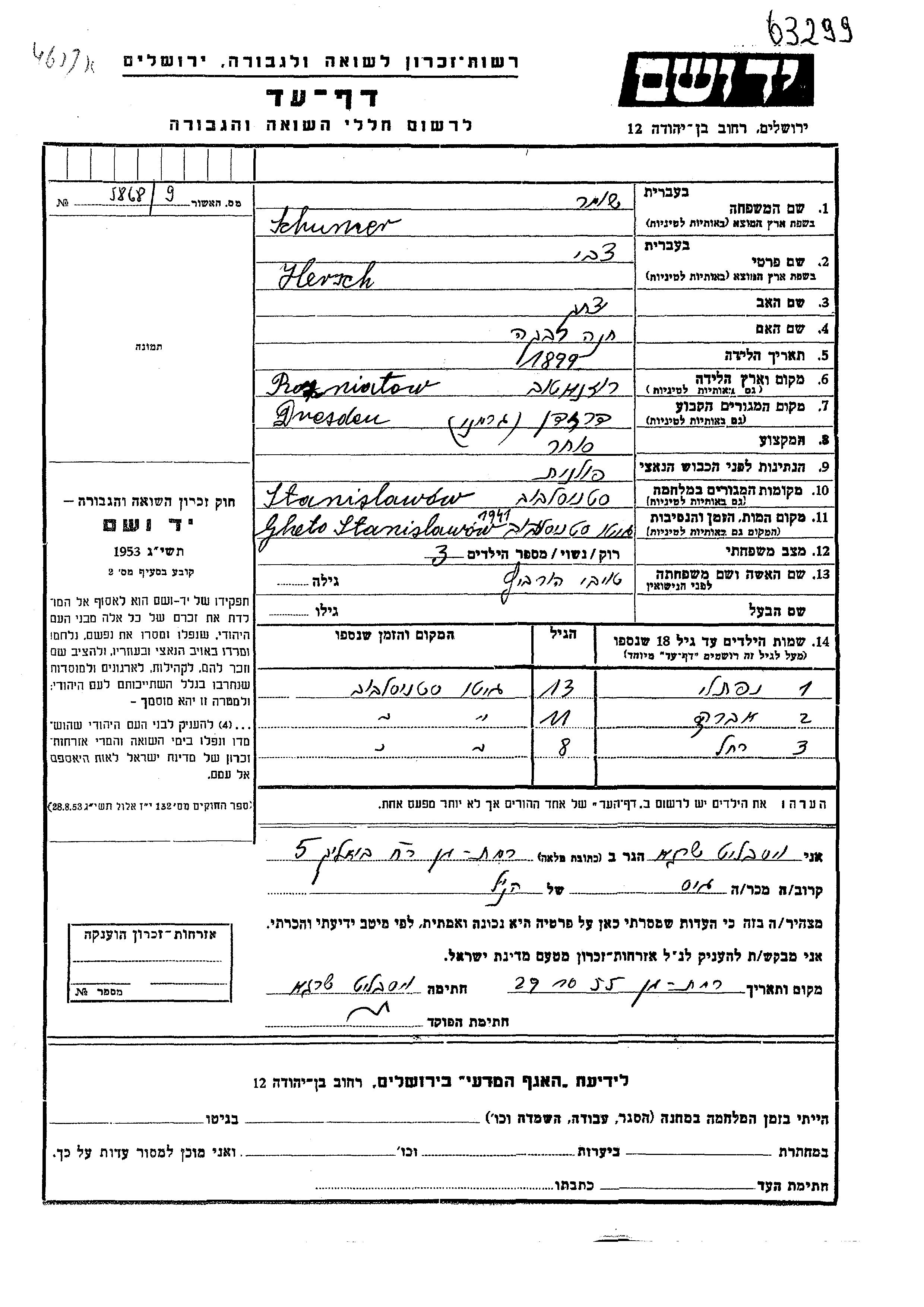 Шумер Рахель Дрезден, Германия Лист свидетельских показаний