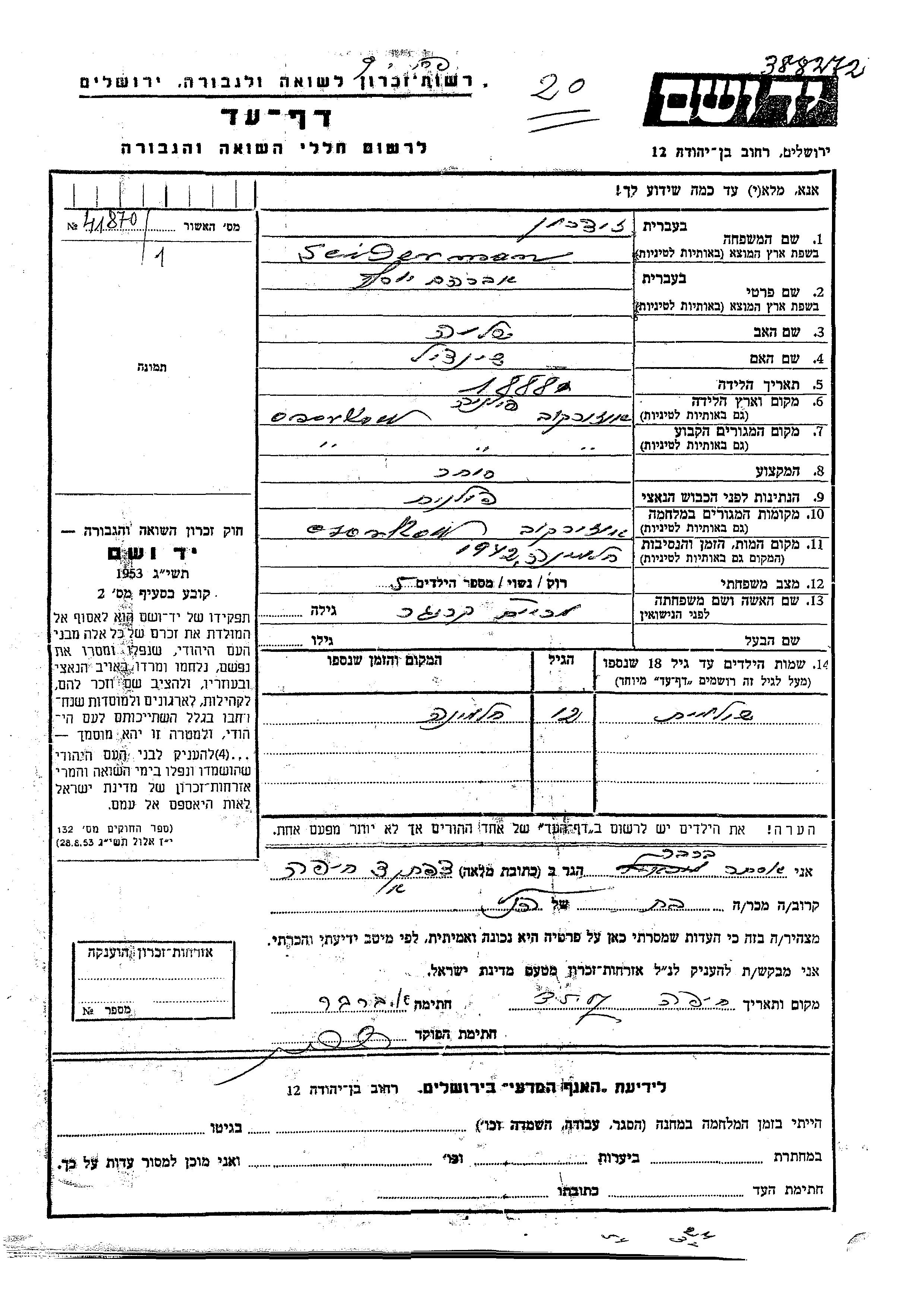 Яд Вашем - Листы свидетельских показаний Мемориального фонда