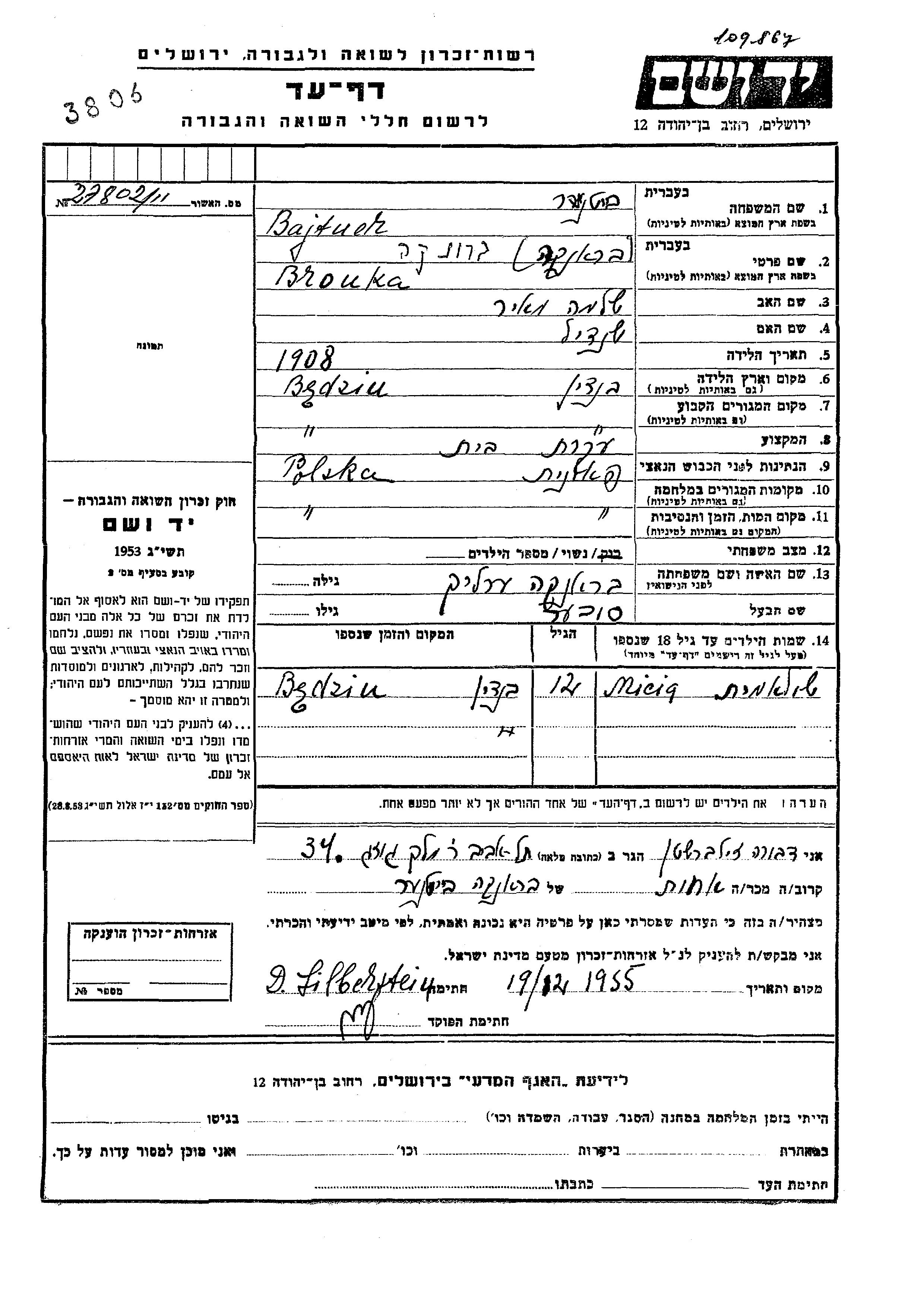 Яд Вашем - Листы свидетельских показаний Мемориального фонда
