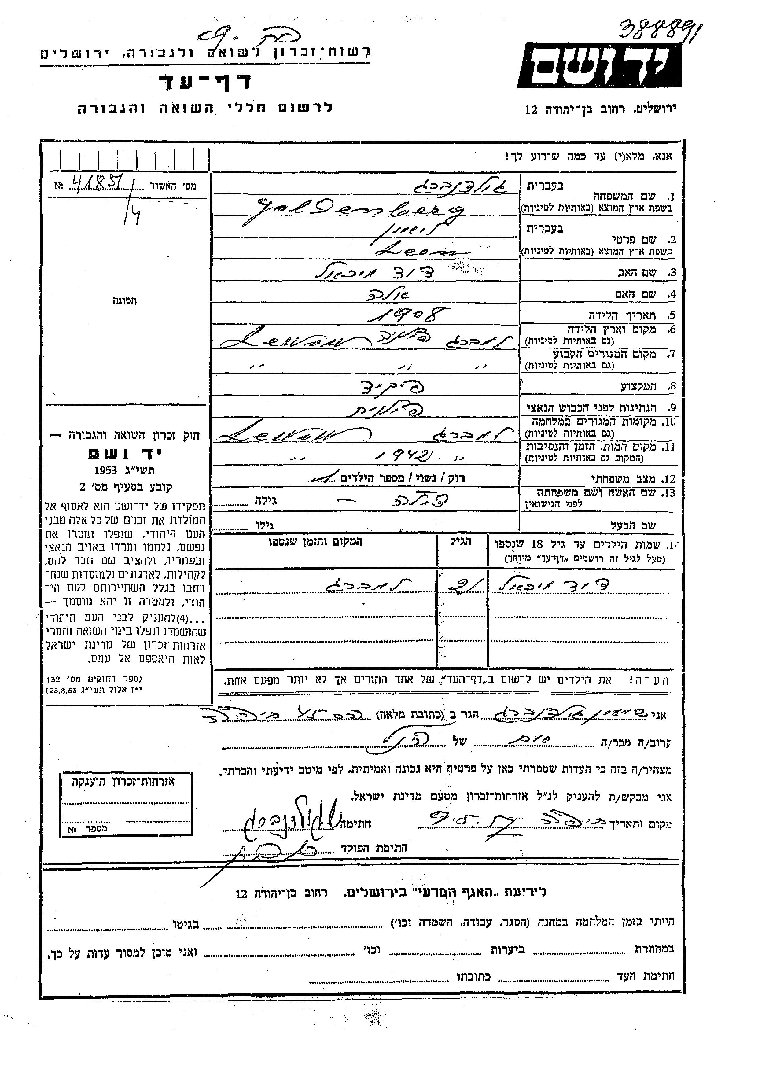 Яд Вашем - Листы свидетельских показаний Мемориального фонда