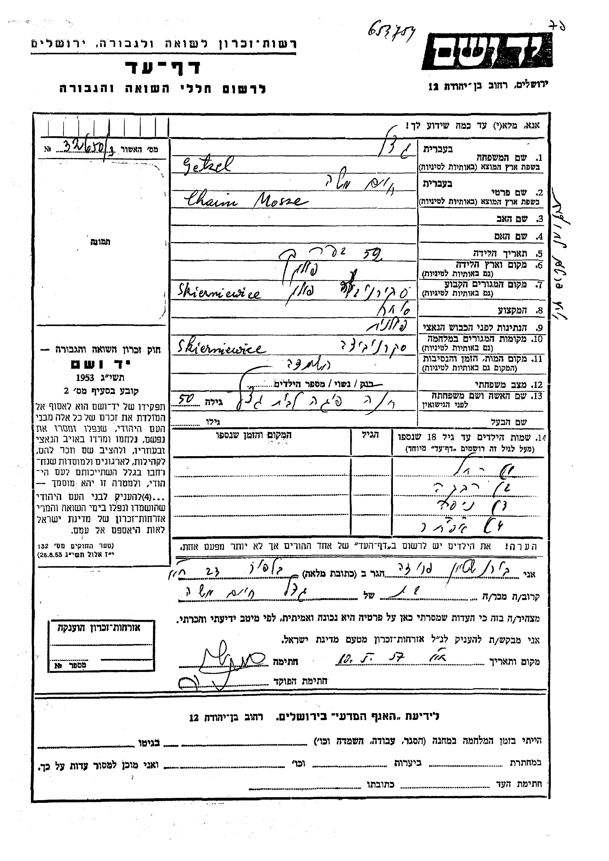 Яд Вашем - Листы свидетельских показаний Мемориального фонда