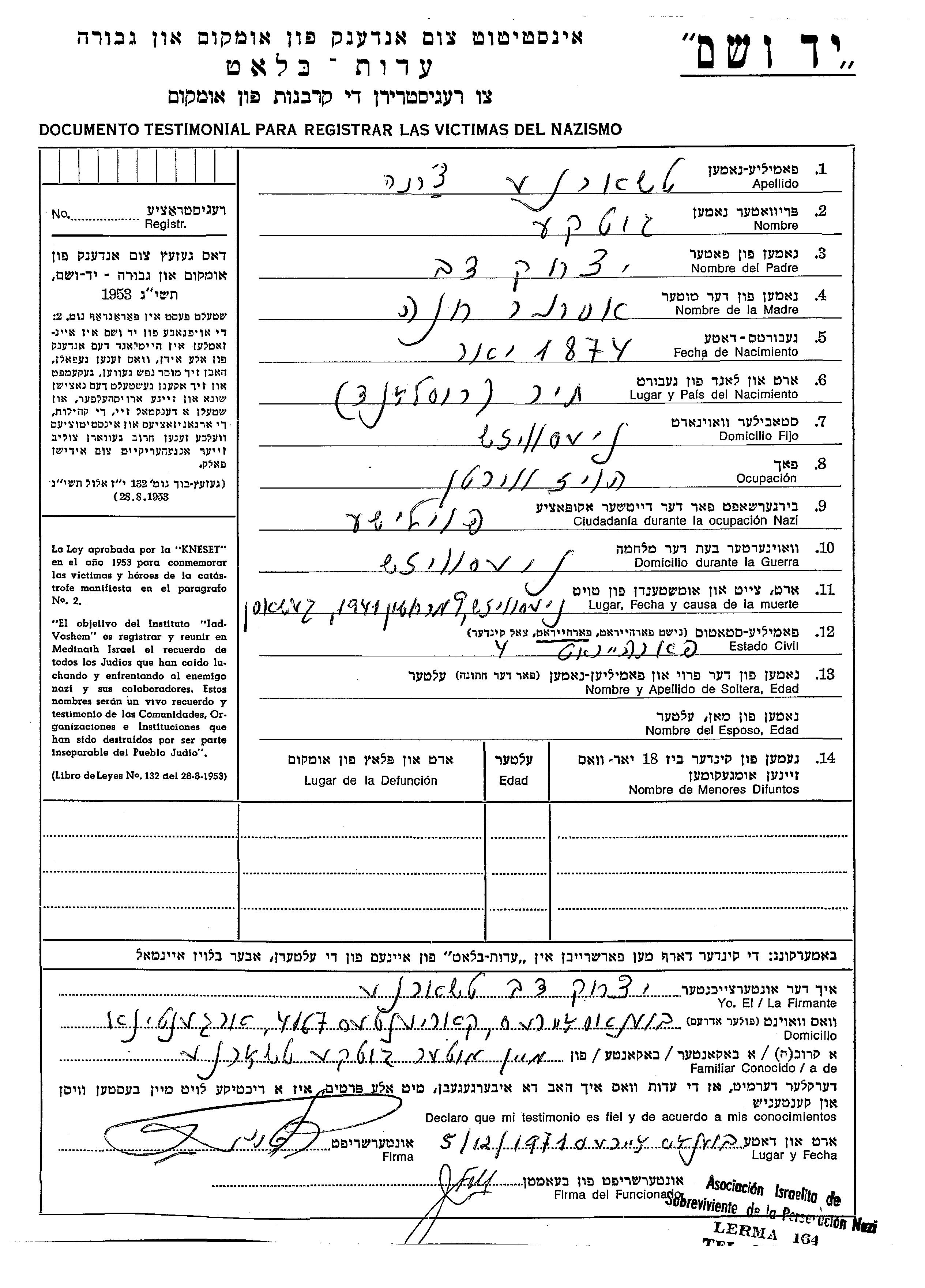 Яд Вашем - Листы свидетельских показаний Мемориального фонда