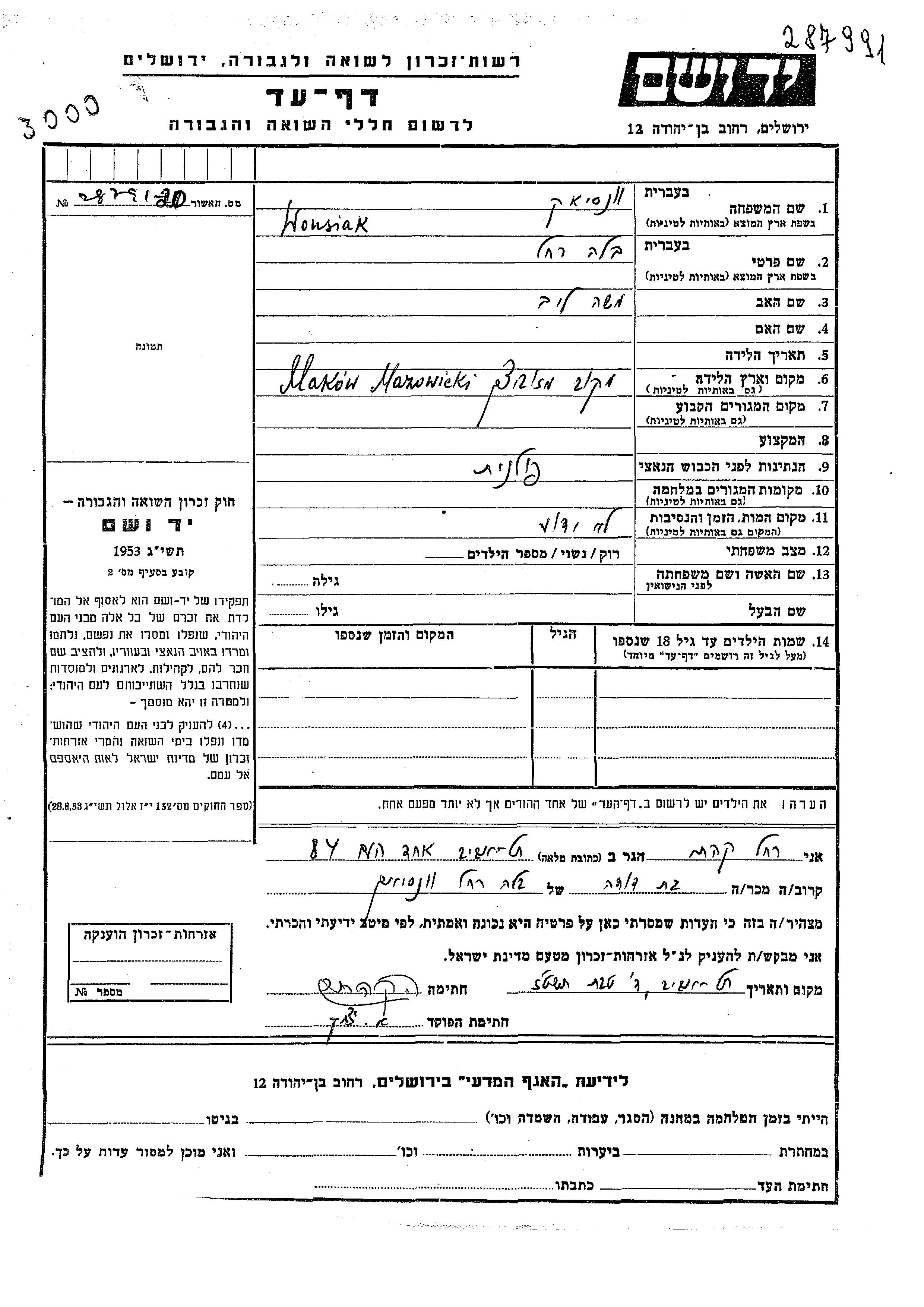Яд Вашем - Листы свидетельских показаний Мемориального фонда