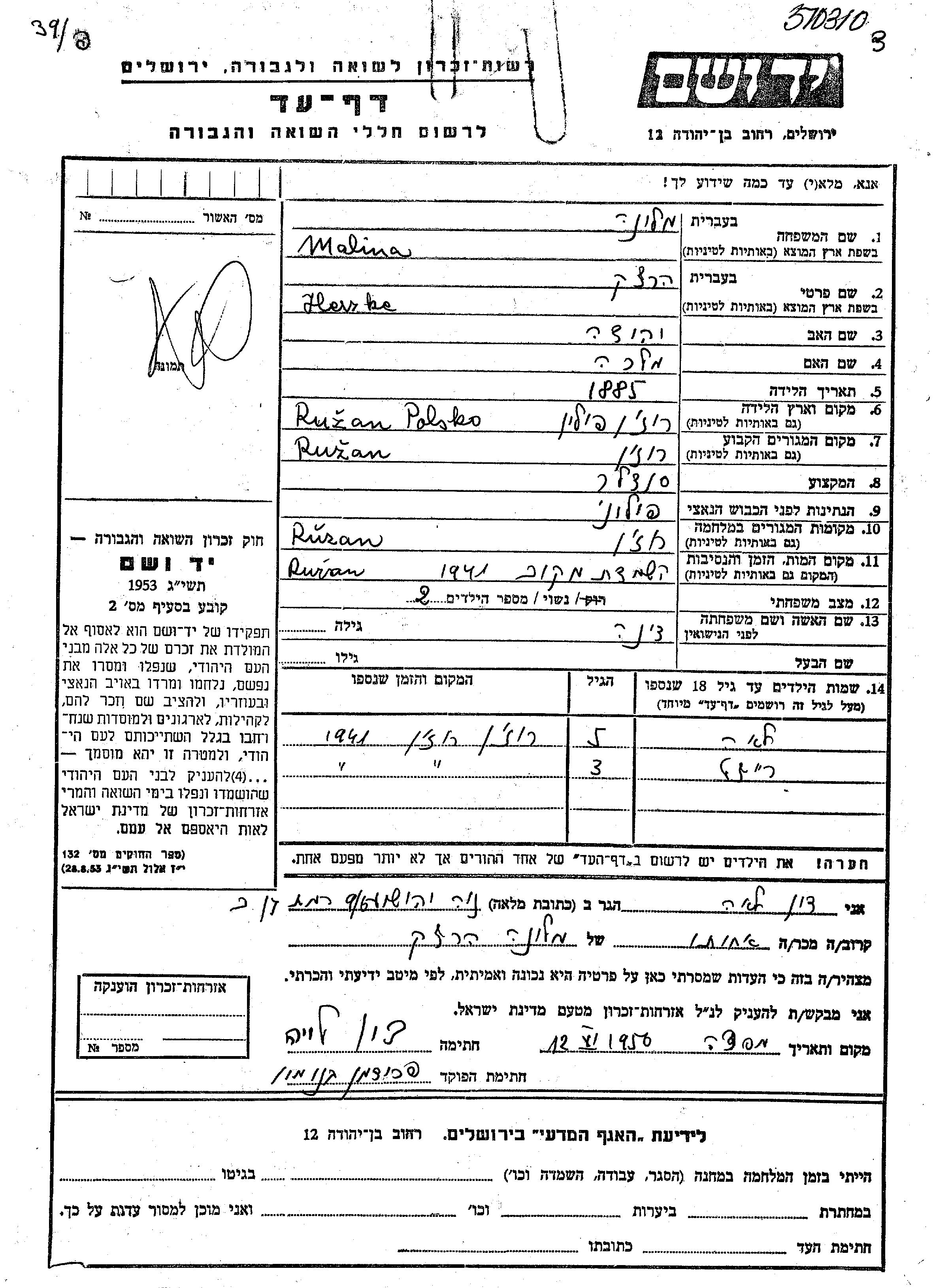 Яд Вашем - Листы свидетельских показаний Мемориального фонда