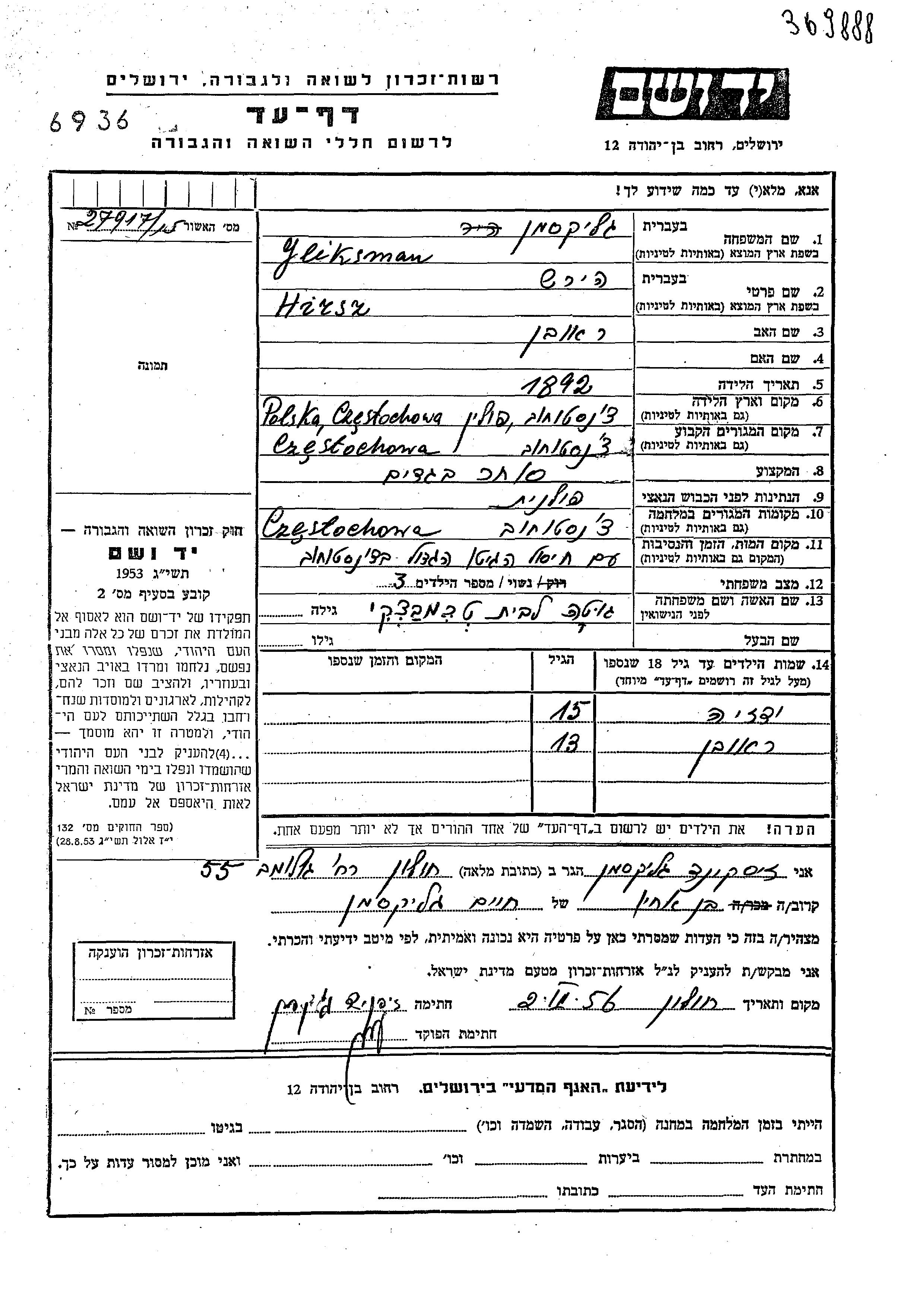 Гликсман Ядзя Ченстохова, Польша Лист свидетельских показаний