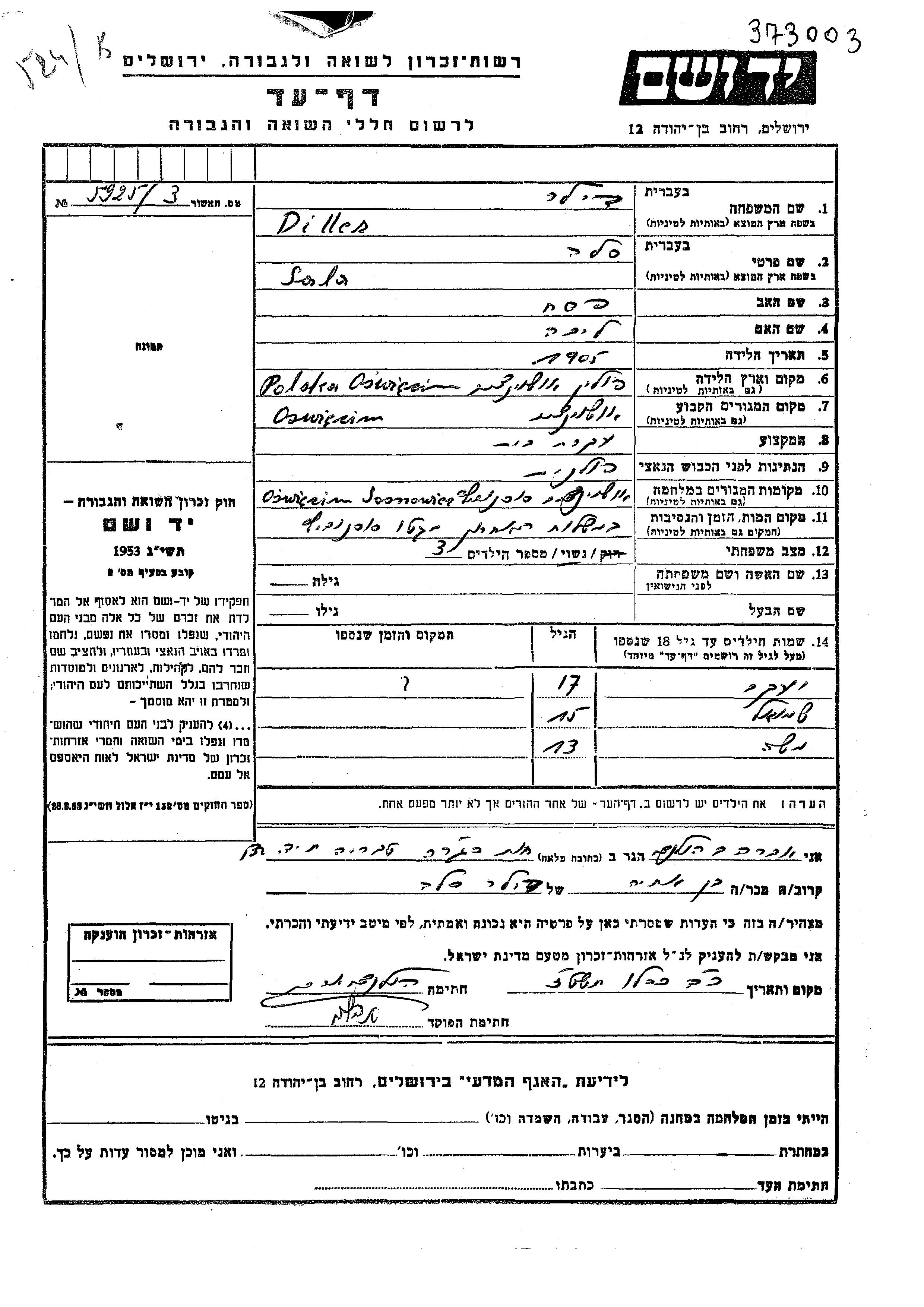Яд Вашем - Листы свидетельских показаний Мемориального фонда