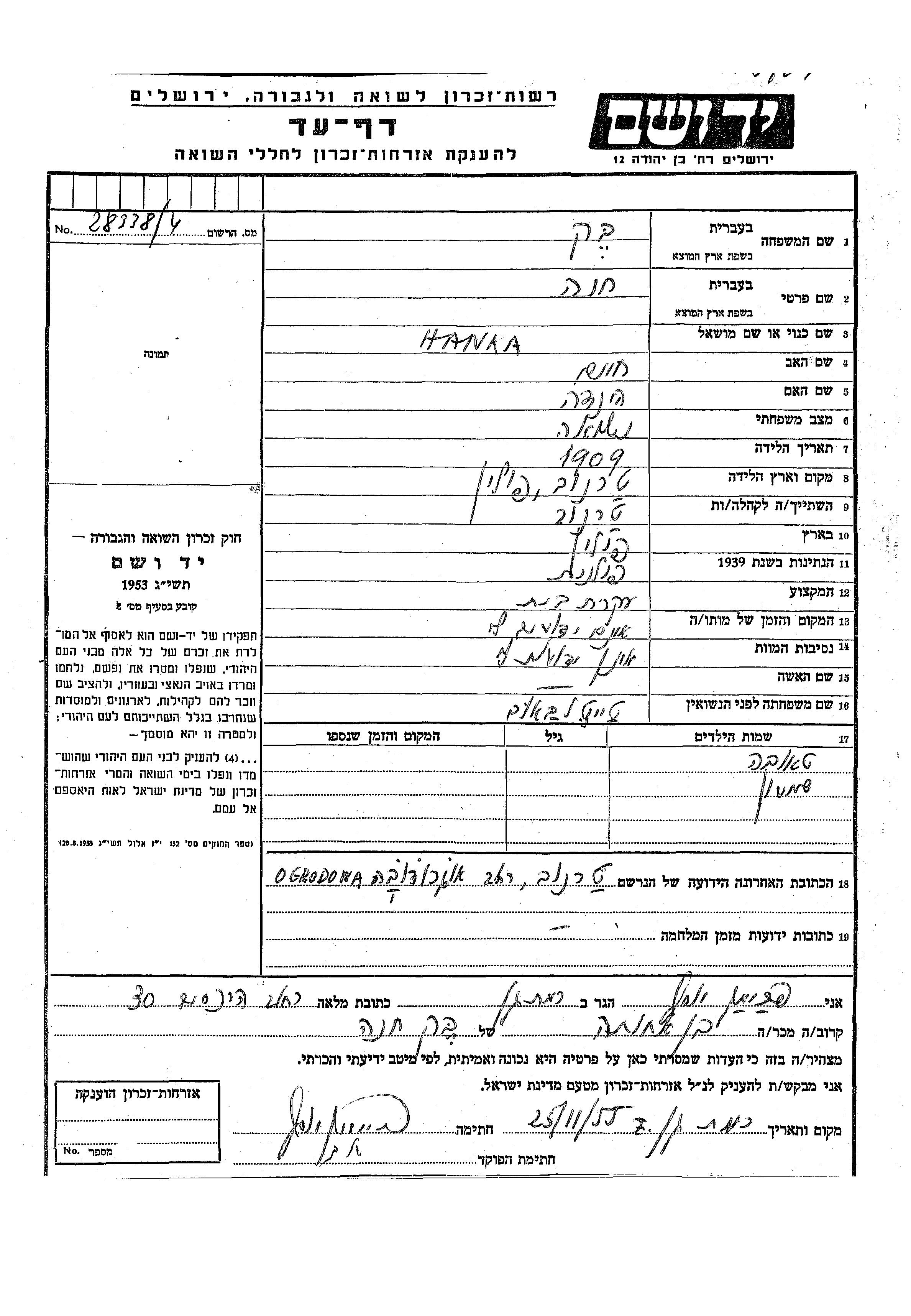 Яд Вашем - Листы свидетельских показаний Мемориального фонда