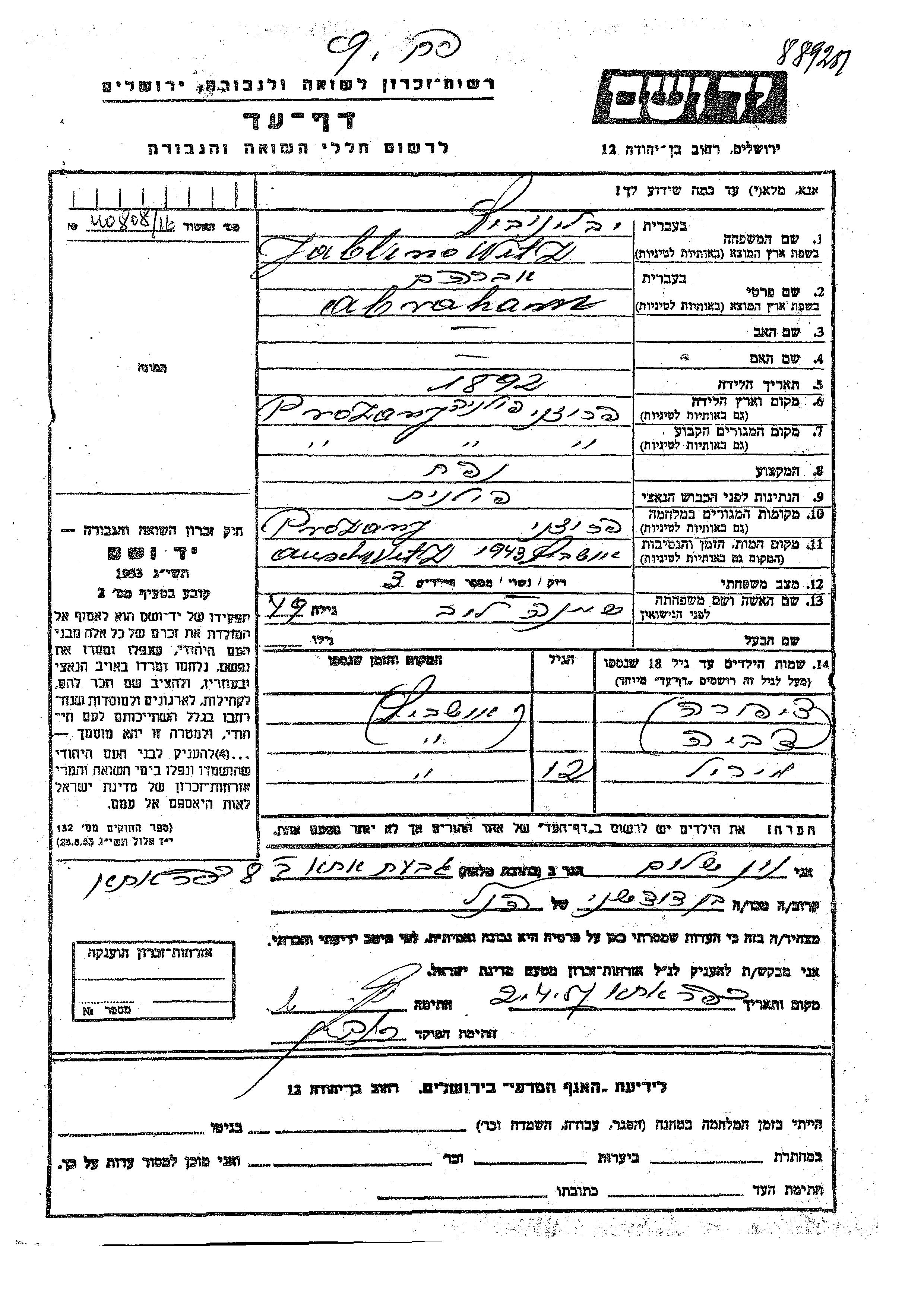 Яблиновиц Ципора Пружаны, Польша Лист свидетельских показаний