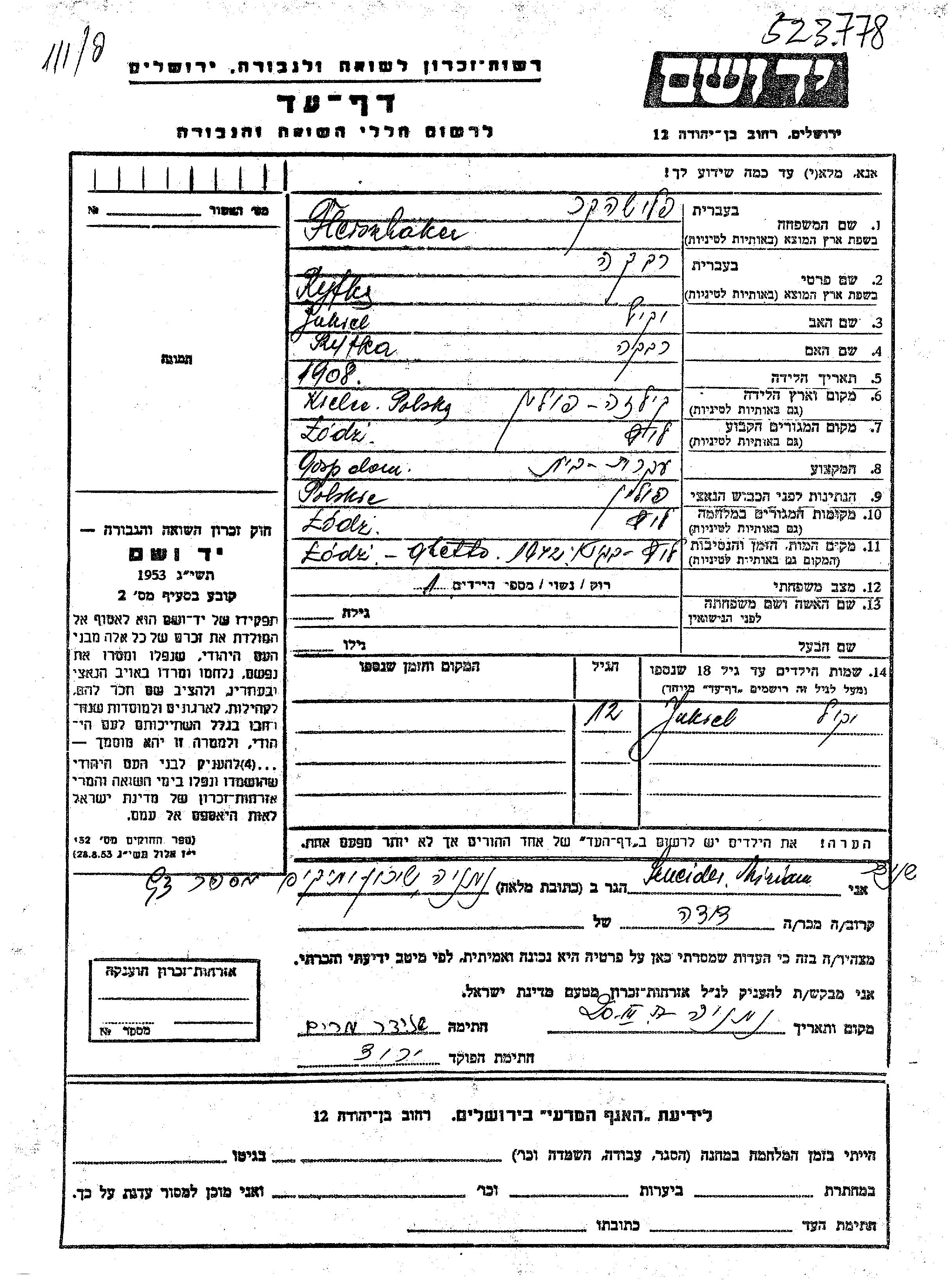 Флейшхакер Якель Лодзь, Польша Лист свидетельских показаний