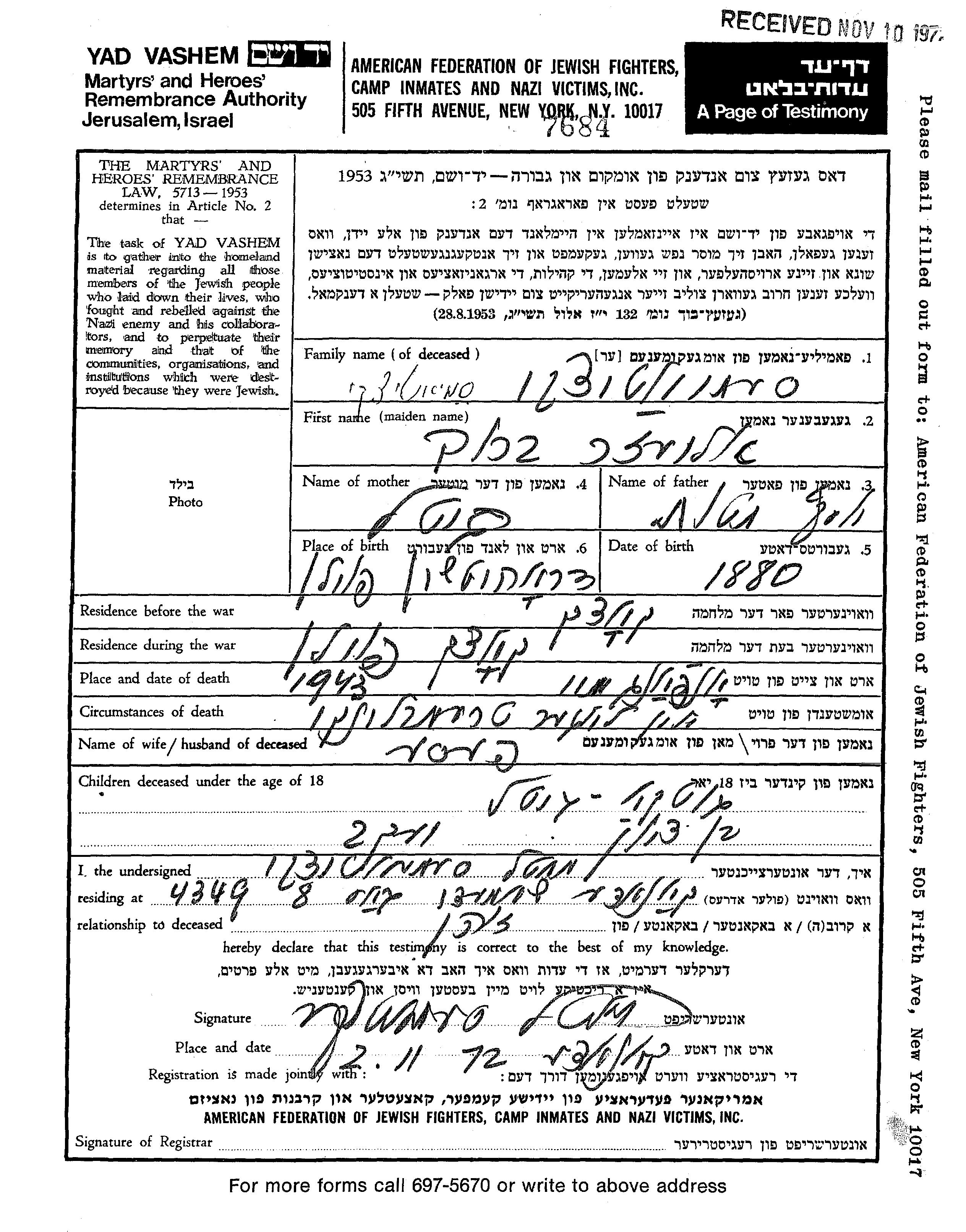 Яд Вашем - Листы свидетельских показаний Мемориального фонда