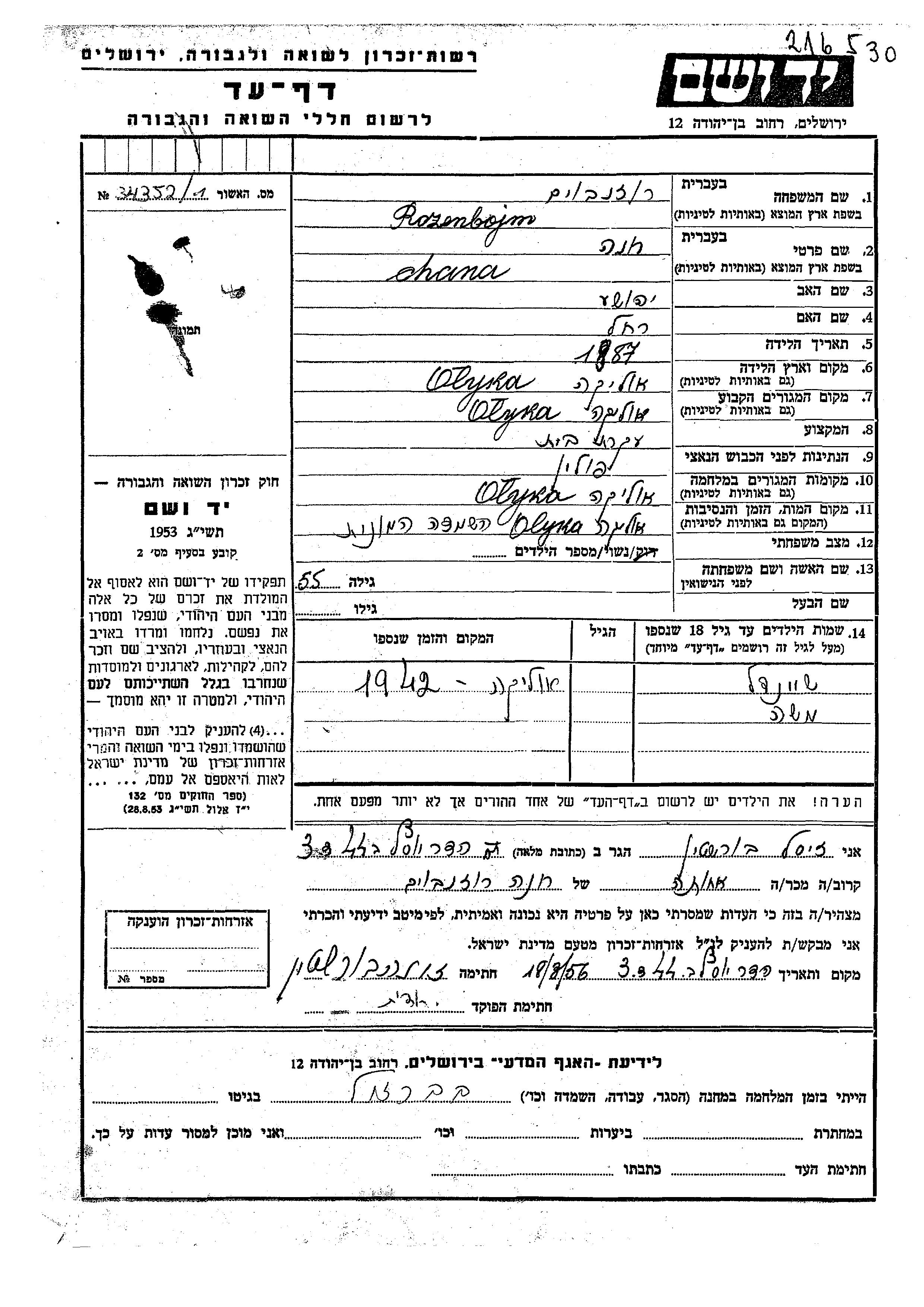 Яд Вашем - Листы свидетельских показаний Мемориального фонда