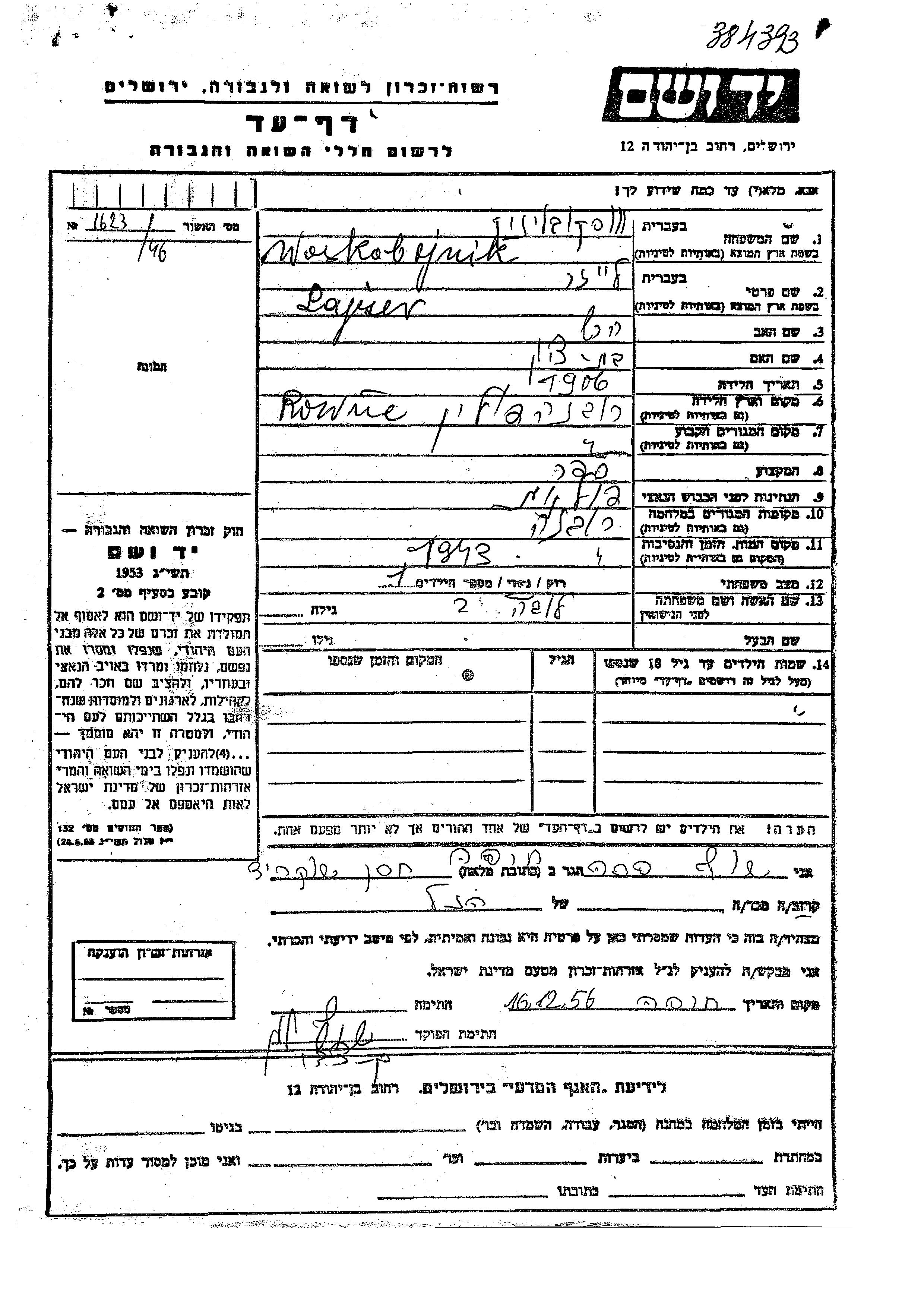 Яд Вашем - Листы свидетельских показаний Мемориального фонда