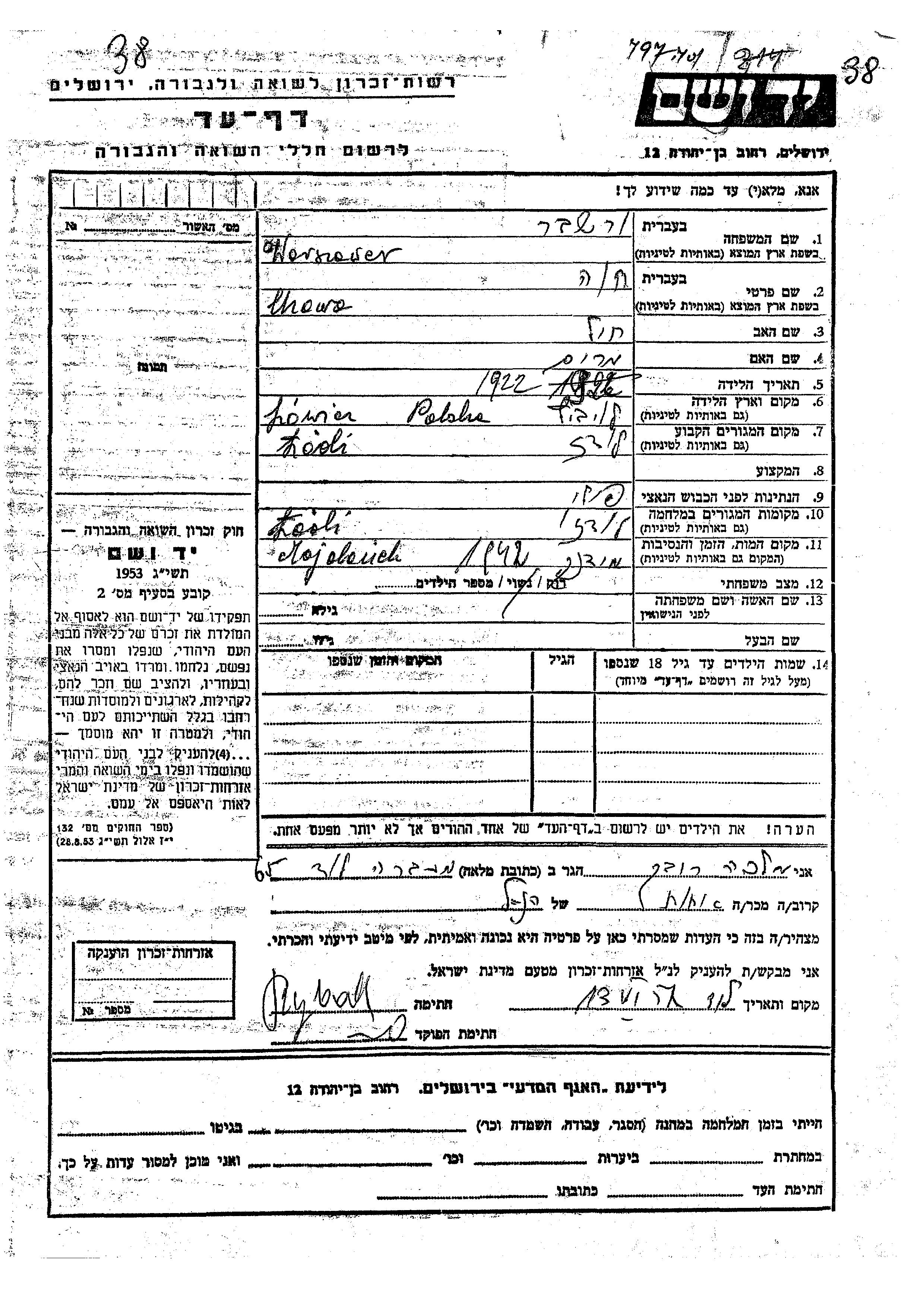 Варшавер Хава 1922 Лодзь, Польша Лист свидетельских показаний