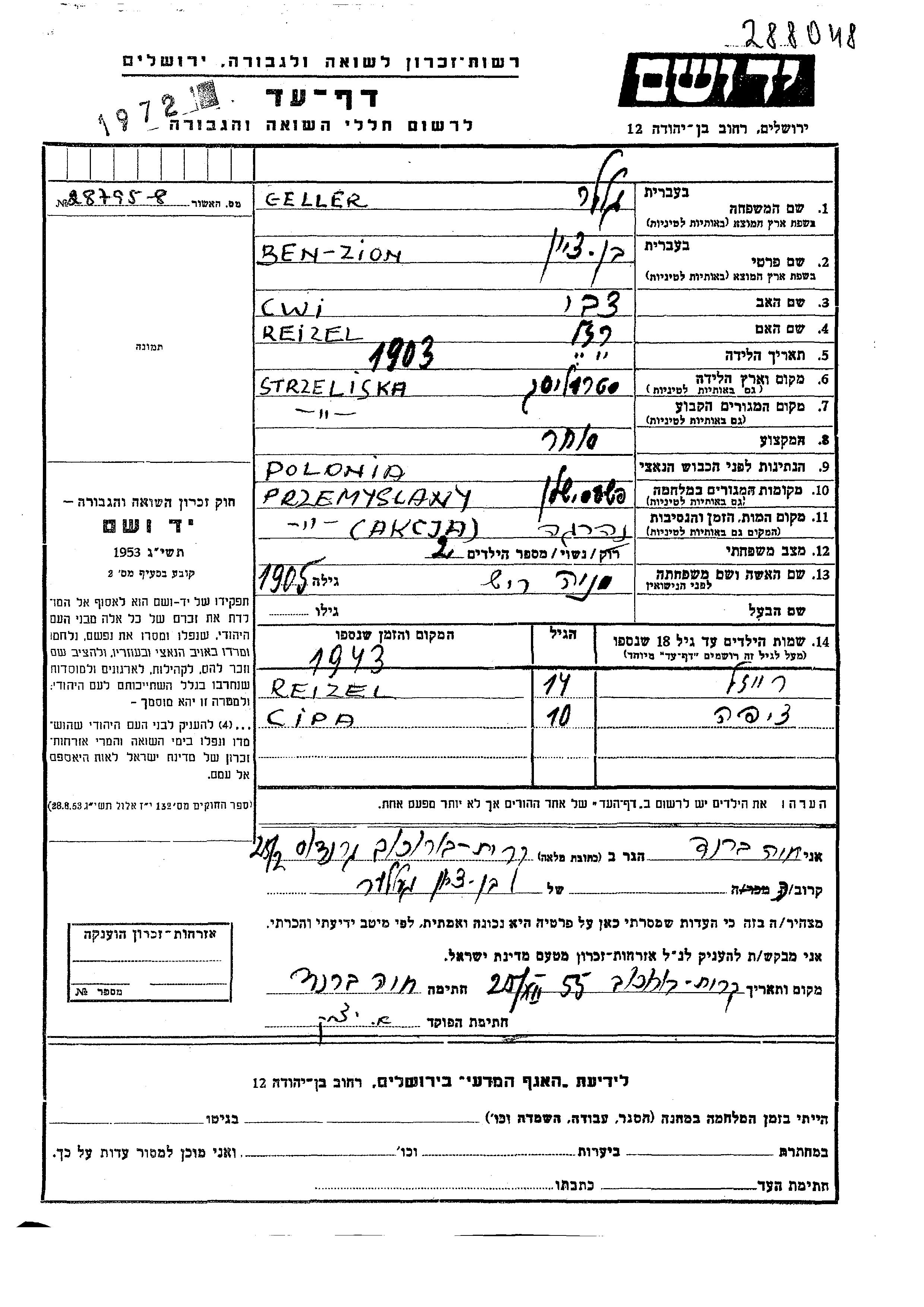 Геллер Ципа Стрелища, Польша Лист свидетельских показаний