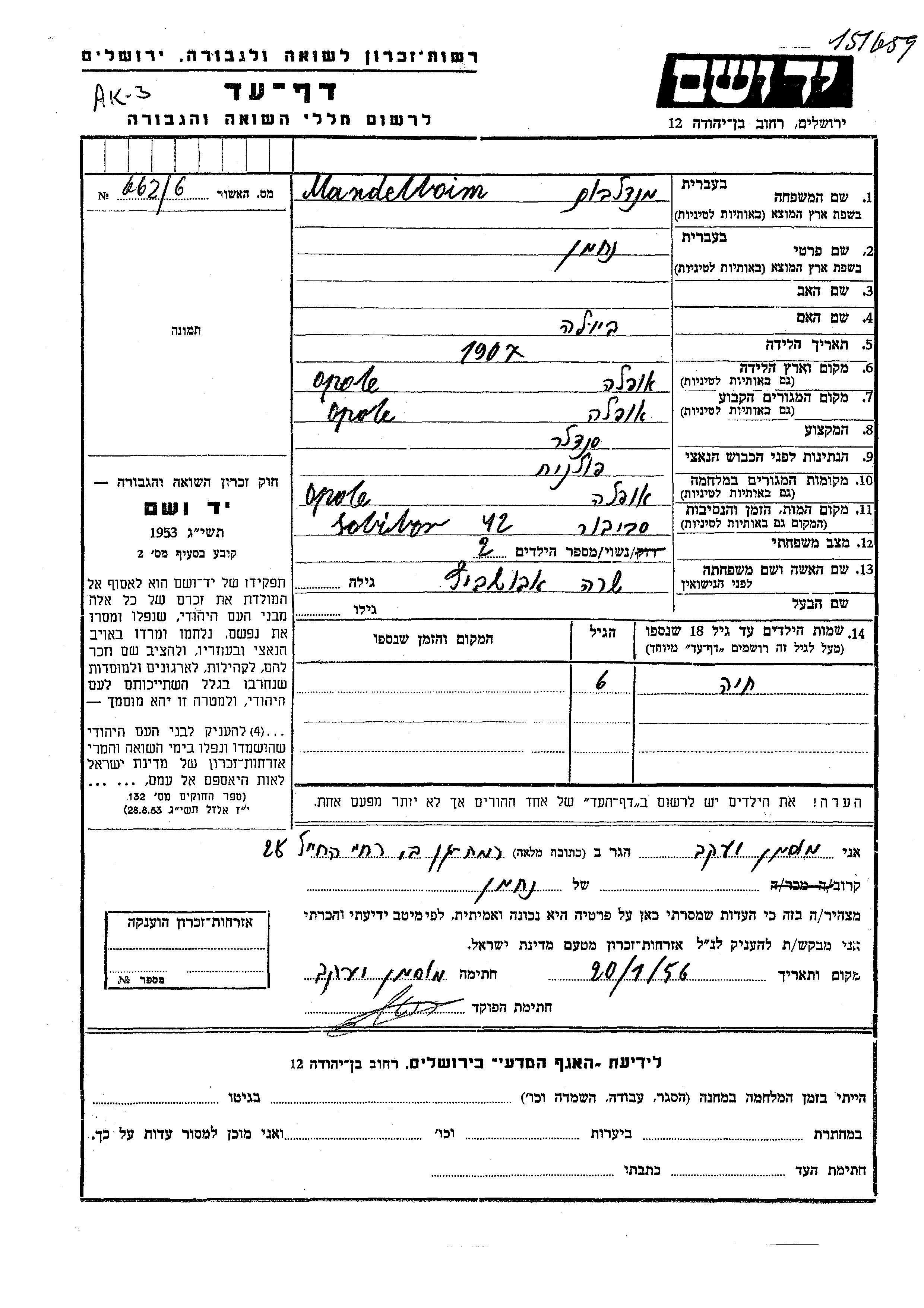 Яд Вашем - Листы свидетельских показаний Мемориального фонда